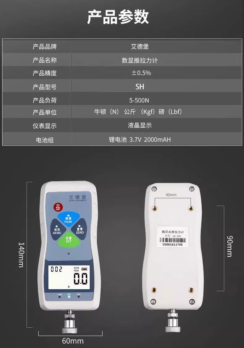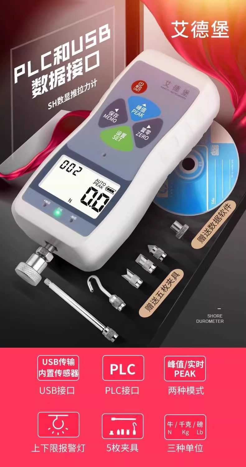 Edberg Digital Display Sh-100/500N Push-Pull Force Gauge Spring Force Measurement Pull Test Machine Plc Interface