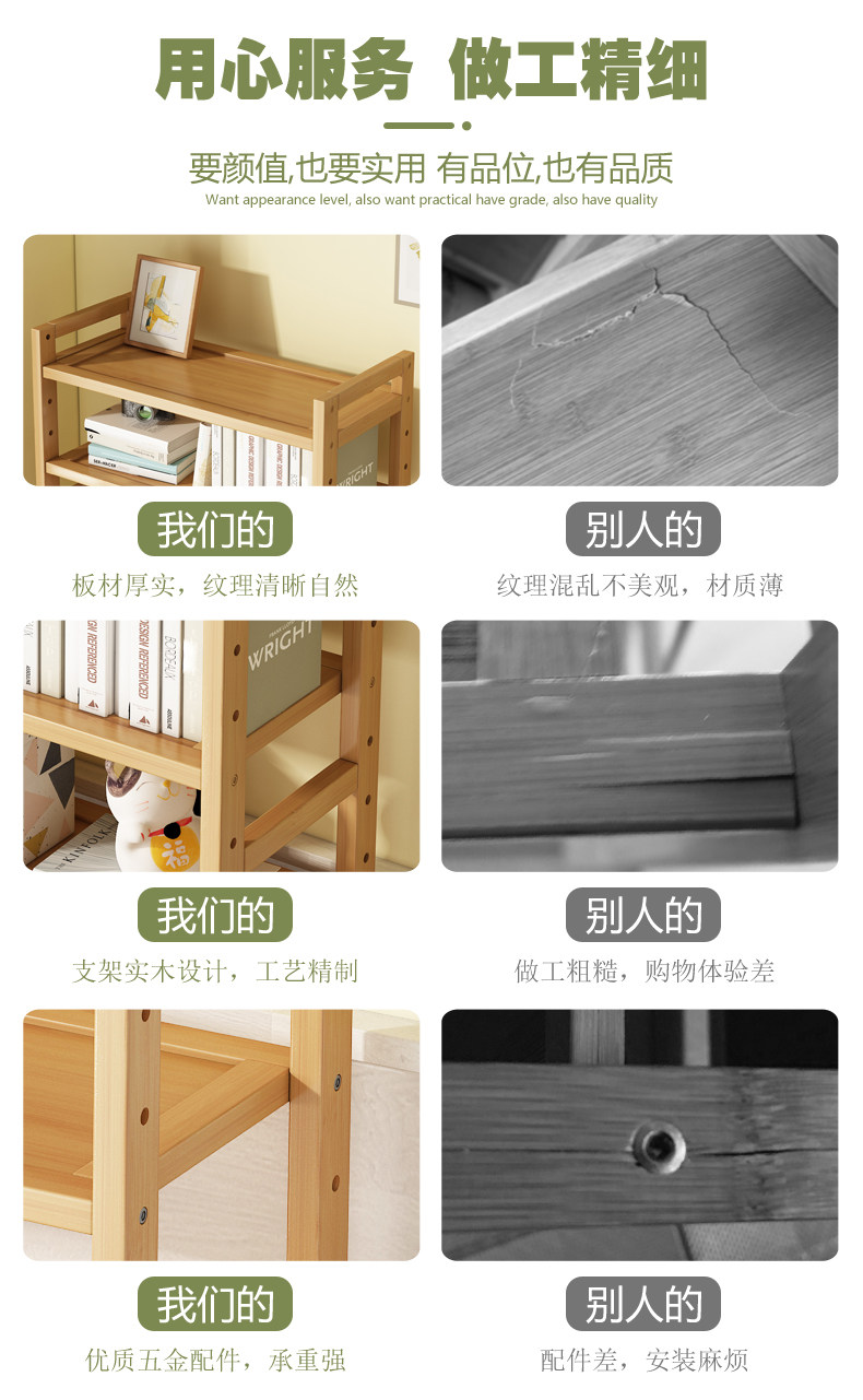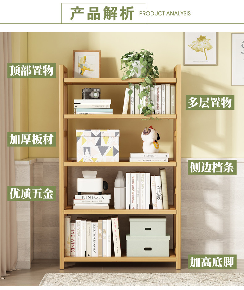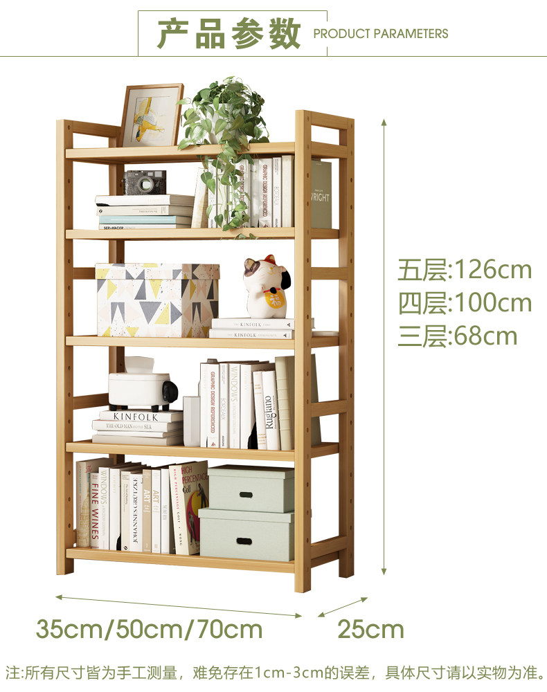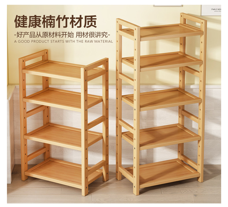 Multi-Layer Bamboo Simple Storage Rack Bedroom Floor-Standing Storage Rack Bookshelf Dining Room Kitchen Wooden Shelf Bathroom Shelf