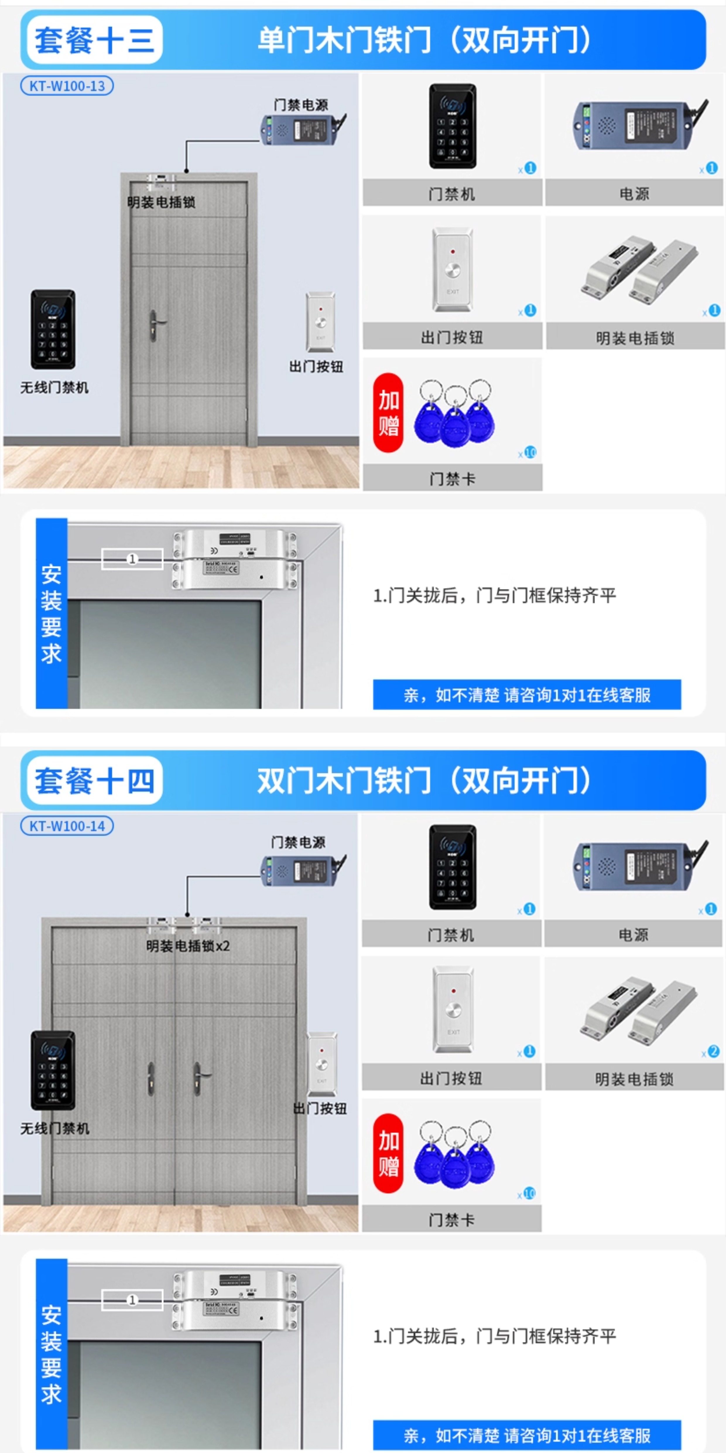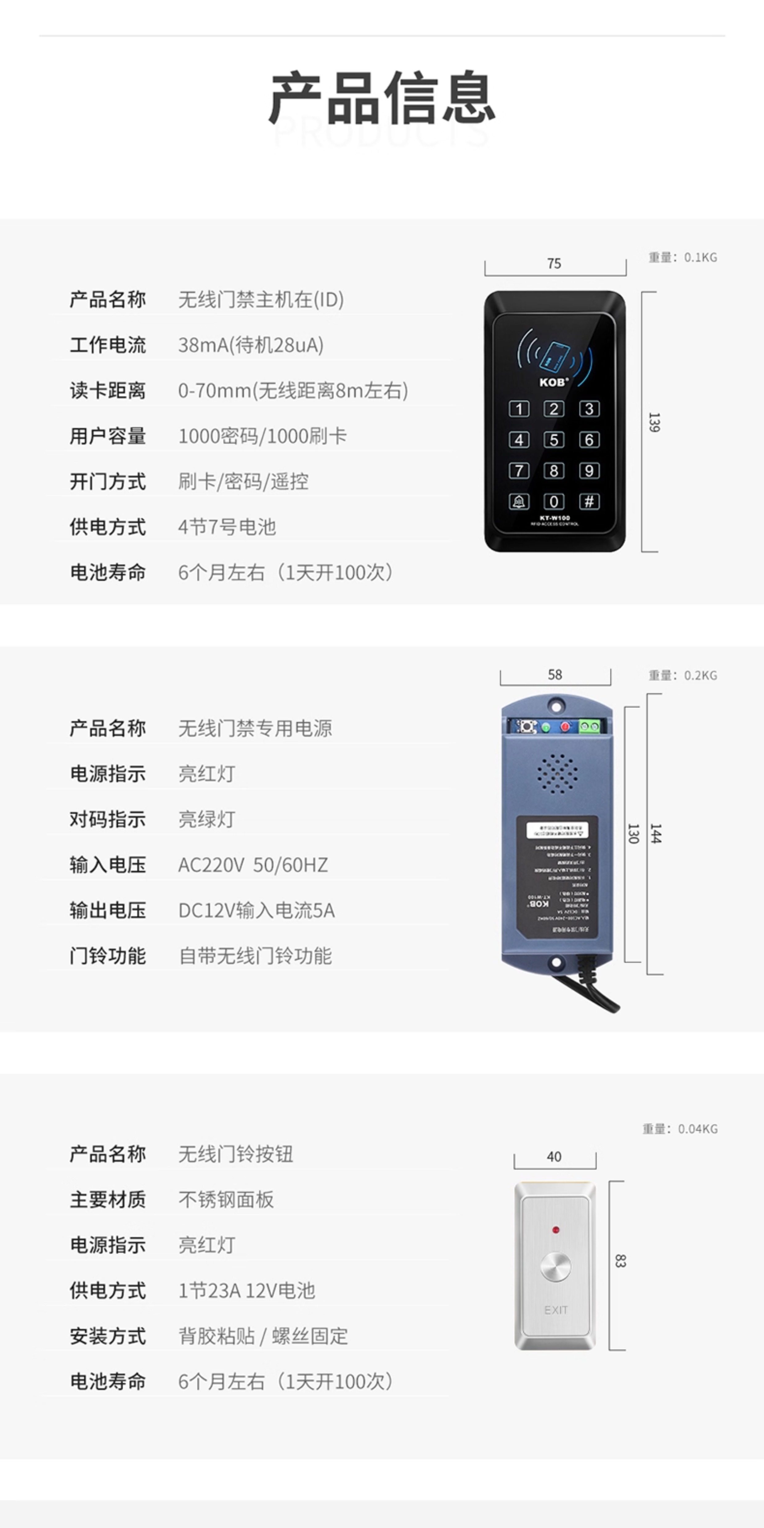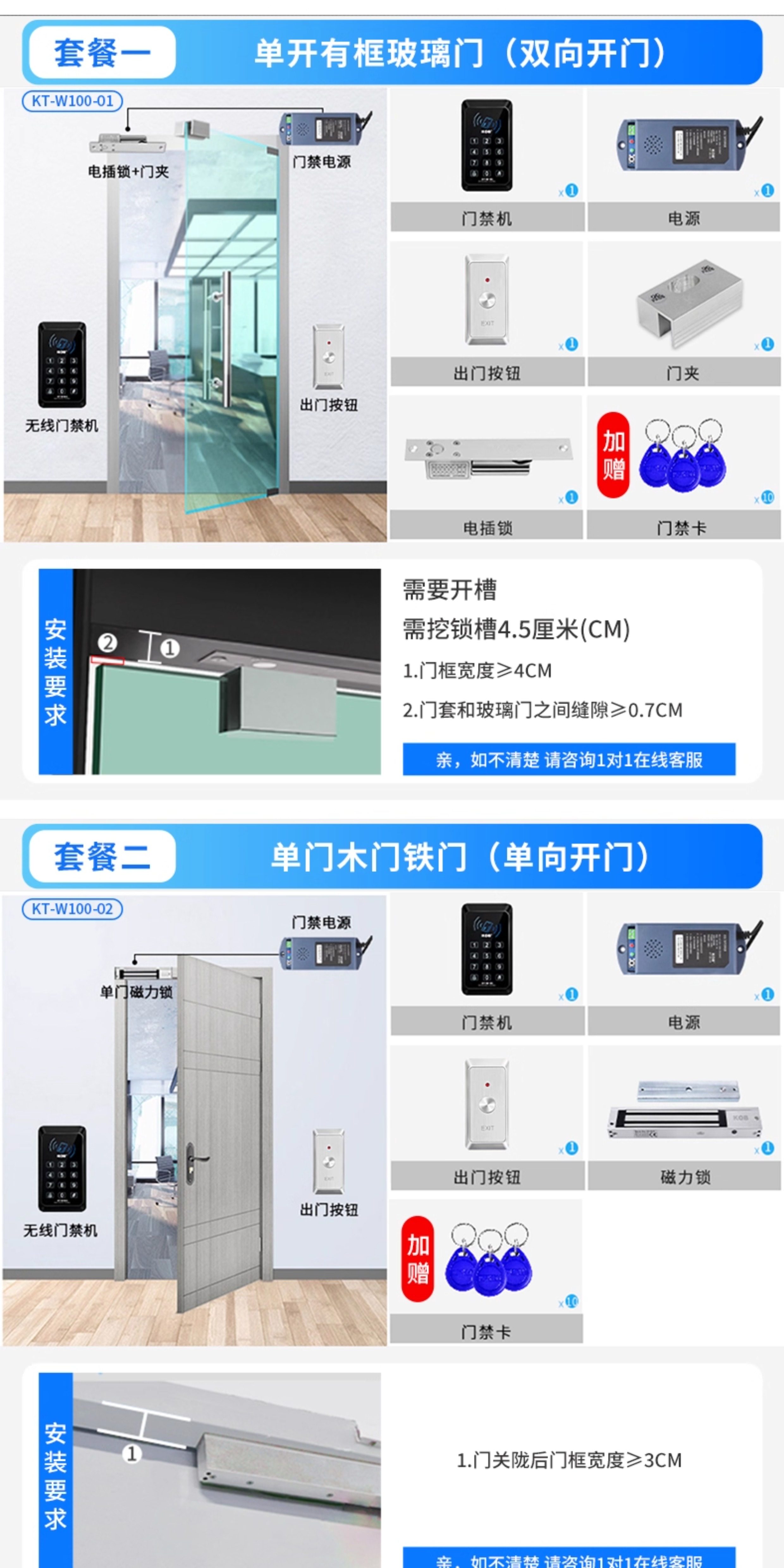 Color Classification Single Wireless Access Control Machine - No Need to Drill Holes,Kt-W100-Wireless Access Control Gold,Second Generation/Three-Piece Set-Hot-Selling Model,First Generation/Gold Three-Piece Set-Old Style,Id [No. 1 Glass Door] Single Door + Electric Mortise Lock + Aluminum Clamp,Id [No. 2 Framed Door] Single Door + Magnetic Lock,Id [No. 3 Framed Door] Single Door + Magnetic Lock + L Bracket,Id [No. 4 Glass Door] Single Door + Magnetic Lock + U-Clip,Id [No. 5 Framed Door] Single Door + Magnetic Lock + Lz Bracket,Id [No. 6 Frameless Glass Door] Single Door + Electric Mortise Lock,Id [No. 7 Frameless Glass Door] Double Door + Electric Mortise Lock,Id [No. 8 Glass Door] Double Door + Electric Mortise Lock + Aluminum Clamp,Id [No. 9 Framed Door] Double Door + Magnetic Lock,Id [No. 10 Framed Door] Double Door + Magnetic Lock + L Bracket,Id [No. 11 Glass Door] Double Door + Magnetic Lock + U Bracket,Id [No. 12 Framed Door] Double Door + Magnetic Lock + Lz Bracket,Id [No. 13 Framed Door] Single Door + Surface-Mounted Electric Mortise Lock,Id [No. 14 Framed Door] Double Door + Surface-Mounted Electric Mortise Lock,Nationwide Door-To-Door Installation [Contact Customer Service]