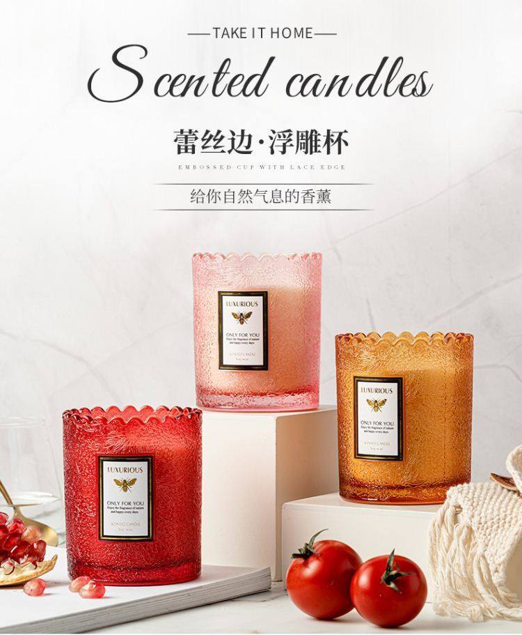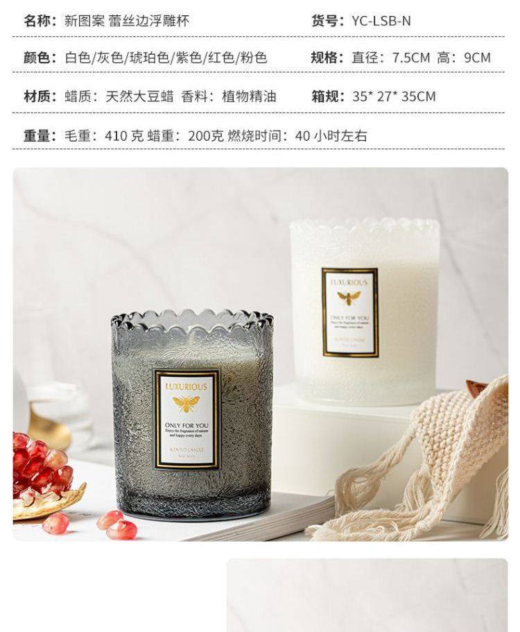 Niche ins Style Lace-Edged Embossed Scented Candle Souvenir Bedroom Romantic Flirting Sleep Aid for Girls Freesia