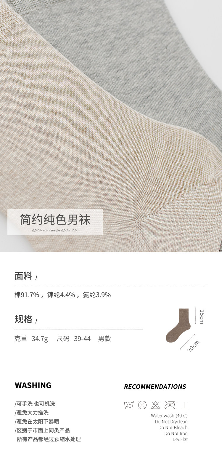 Japanese Style Men's Mid-Calf Socks Black Spring and Summer Socks Men's Solid Color Long Socks White Socks Combed Cotton Socks Student Socks Breathable