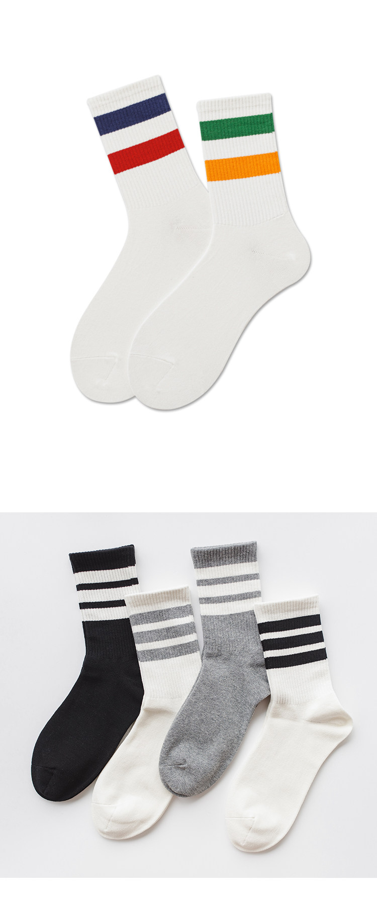 Xinjiang Cotton Men's Long Socks Spring and Summer College Style Sports Socks Student Socks Striped Socks Mid-Calf Socks Japanese Style Socks for Men