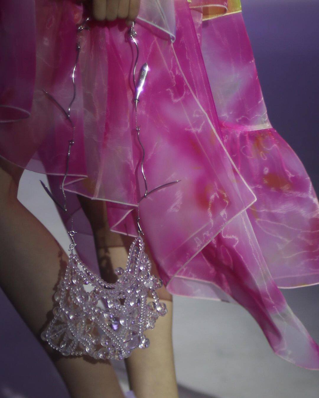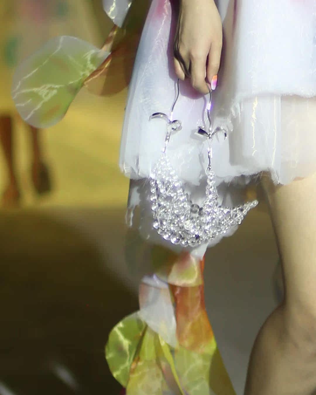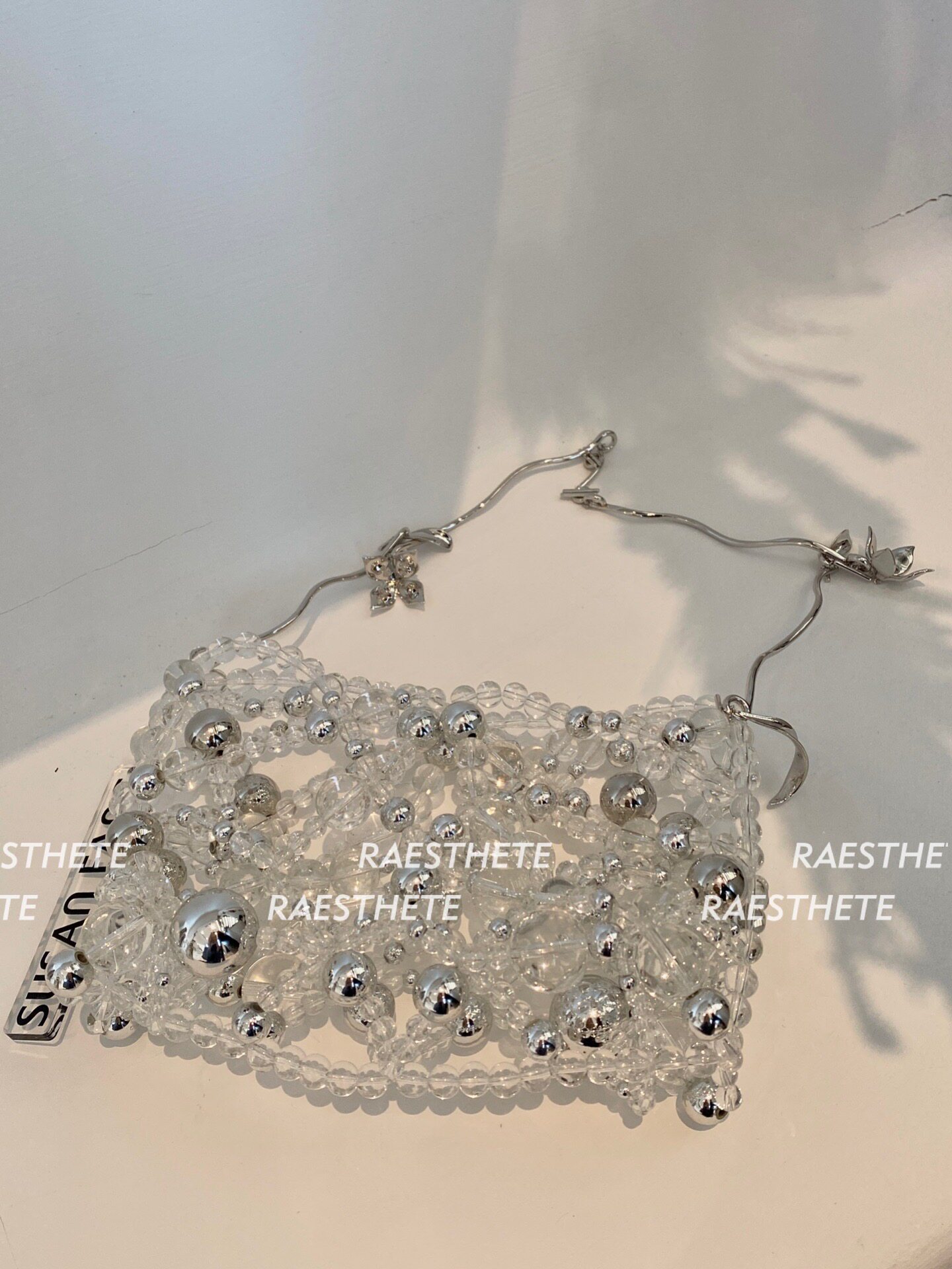 Sold Out: Susan Fang Silver Metal Shoulder Strap Transparent Crystal Ball Handbag
