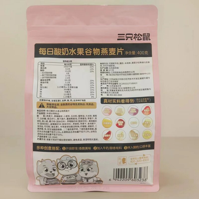 Three Squirrels Fruit Nut Yogurt Oatmeal Instant Breakfast Meal Replacement Drink 500G/400G/350G