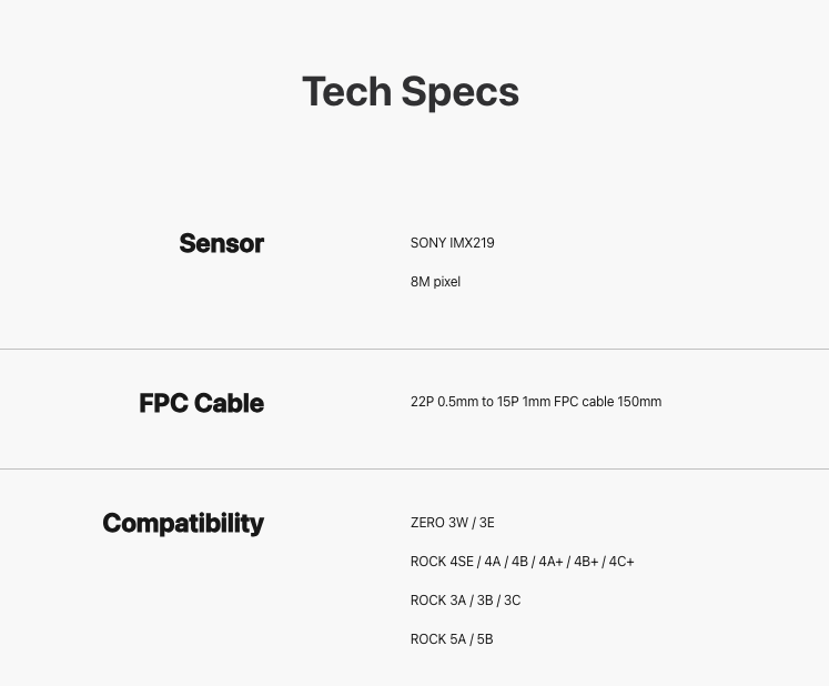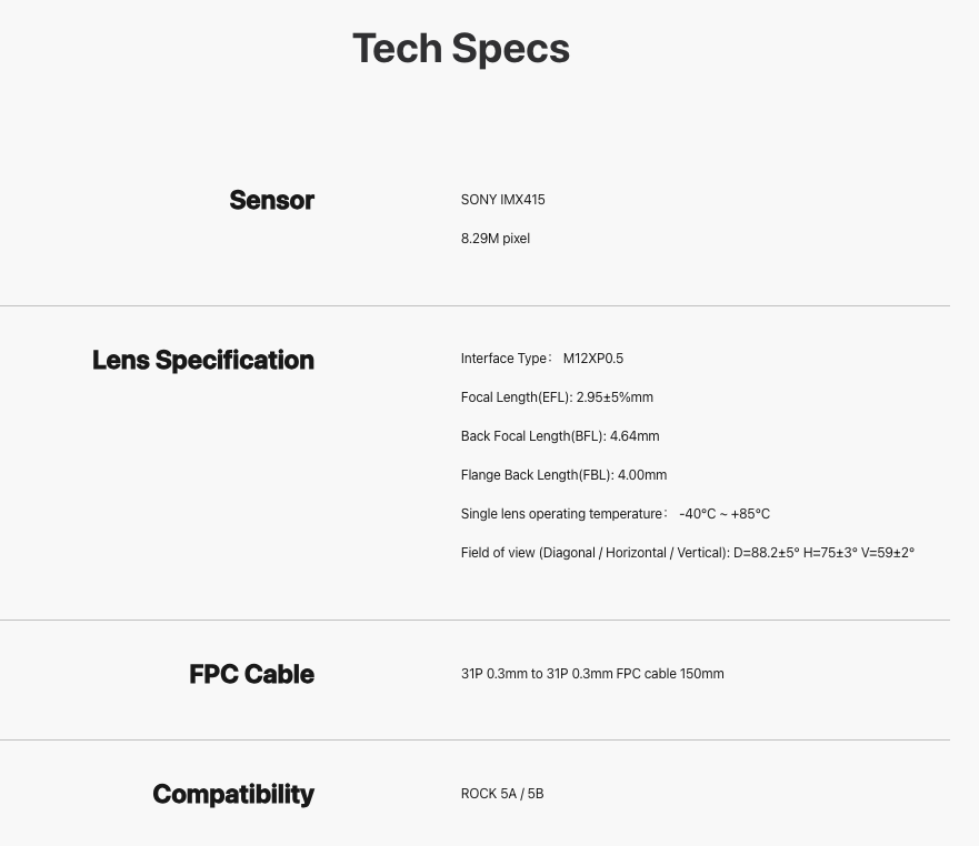 Radxa Official Camera 4K Imx415 Camera Supports 5B /8M 219 Camera Supports Zero