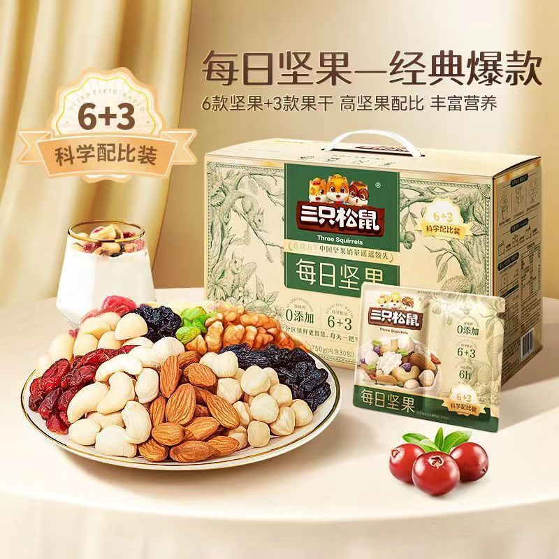 Three Squirrels_Daily Nuts 750g/30 Packs of Healthy Mixed Dried Fruit Snacks for Pregnant Women, Whole Box Gift Box