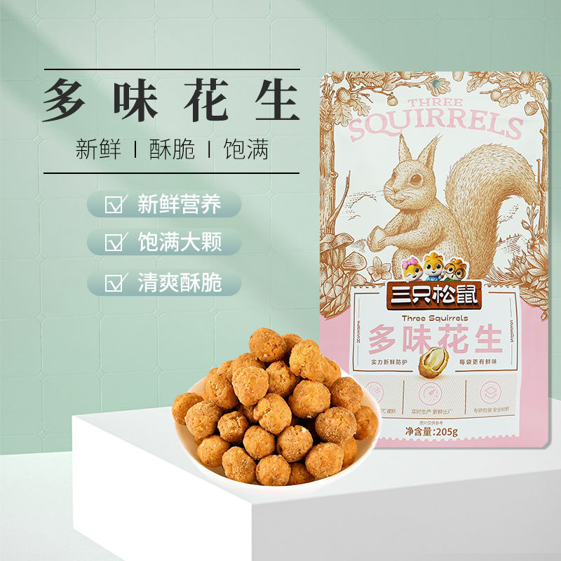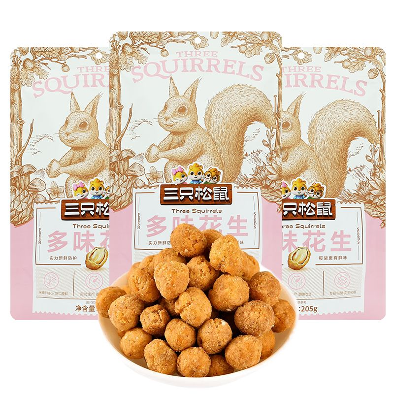 Three Squirrels Purple Sweet Potato Multi-Flavor Peanuts 205Gx3 Bags Snacks Nuts Roasted Seeds and Nuts Leisure Office Snacks Peanut Kernels
