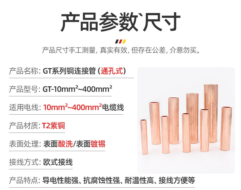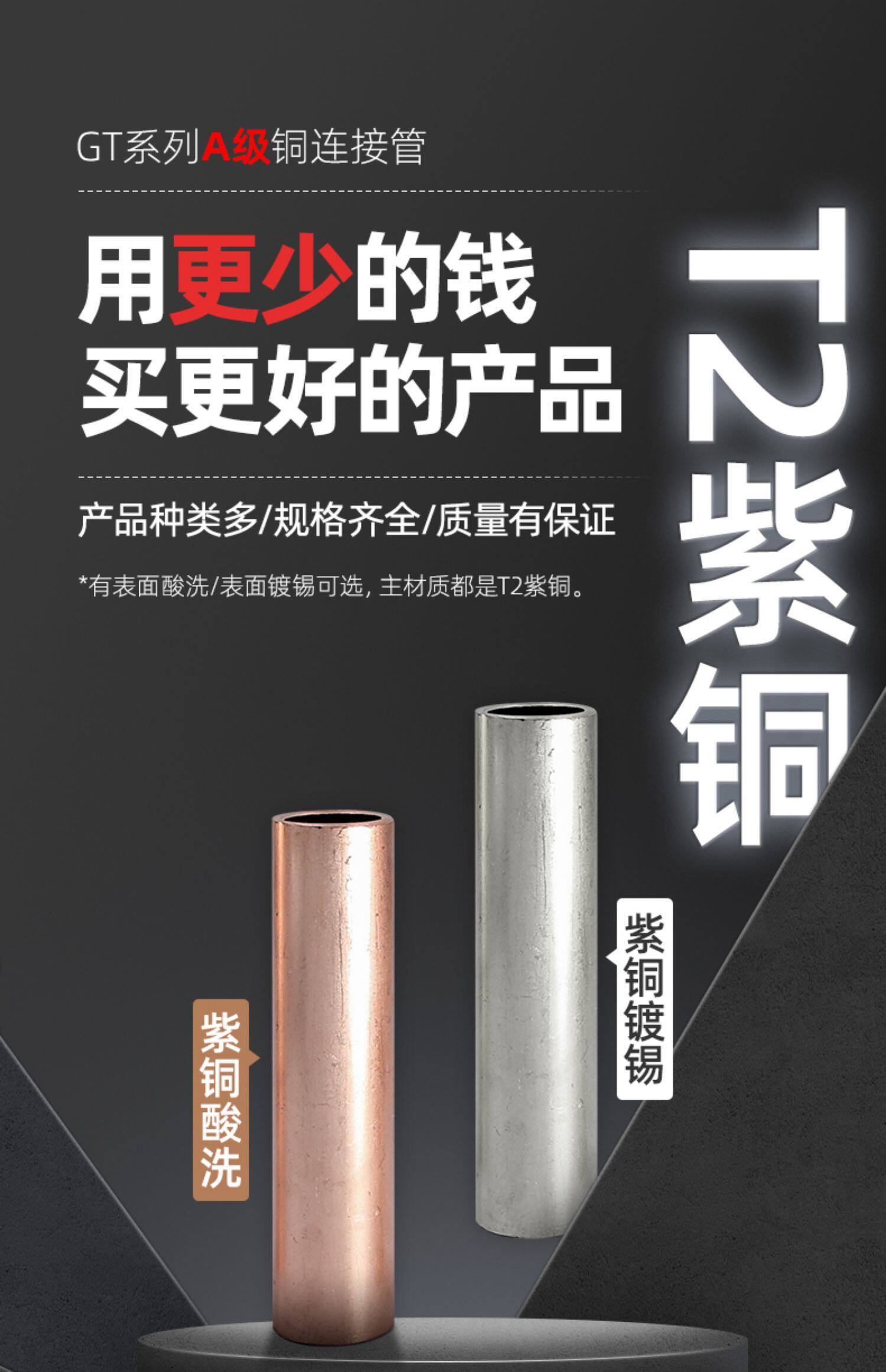 Gt Copper Tube, Copper Connecting Pipe, National Standard A-Grade Red Copper, Copper Connecting Pipe Straight-Through Type, Copper Direct Wire and Cable Connecting Pipe