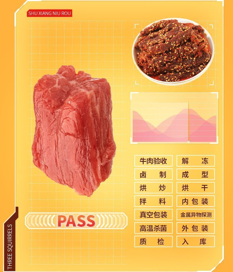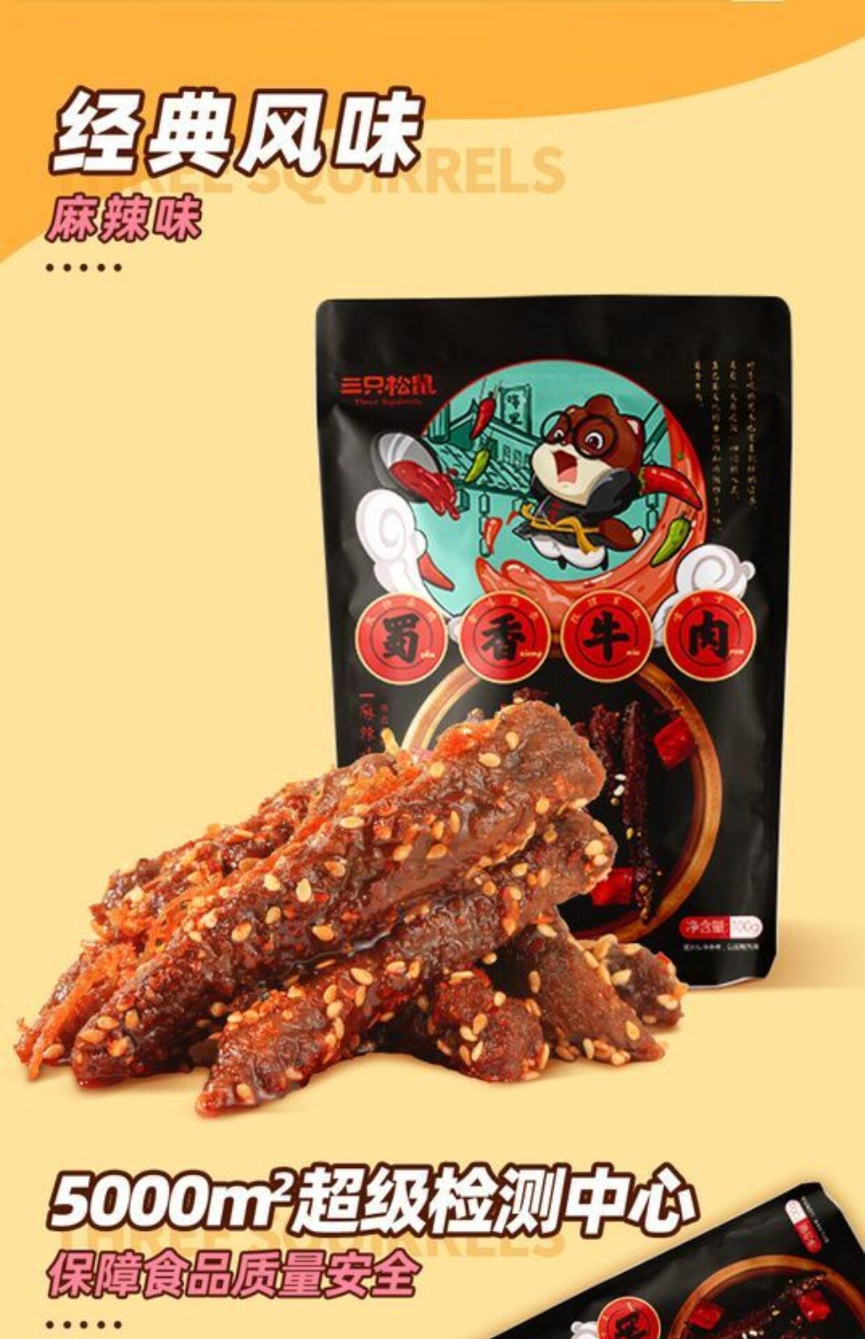 Three Squirrels Sichuan Spicy Beef 100Gx3 Bags Spicy Snacks Leisure Snacks Jerky Shredded Beef Delicacies