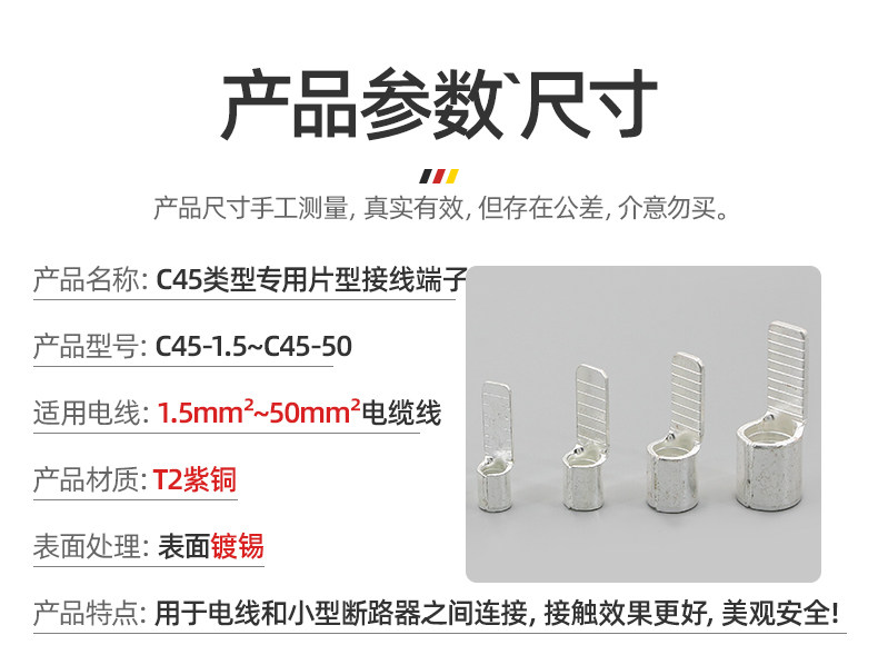 C45 Flat Copper Terminal D747/Ic65 Circuit Breaker Insert Pin Cold-Pressed Copper Connector Copper Flat Terminal Lug