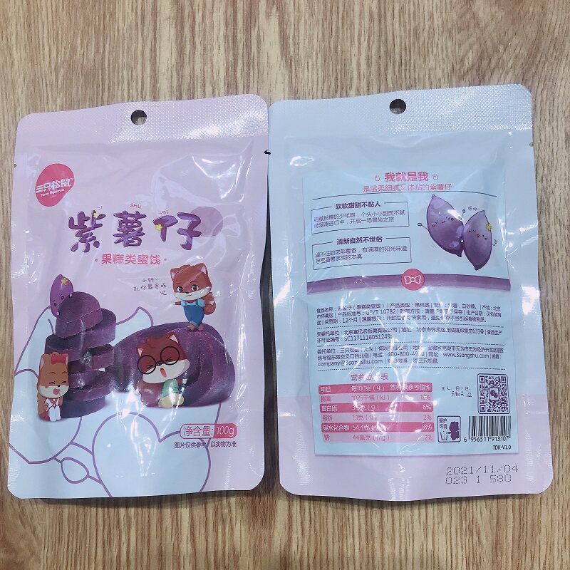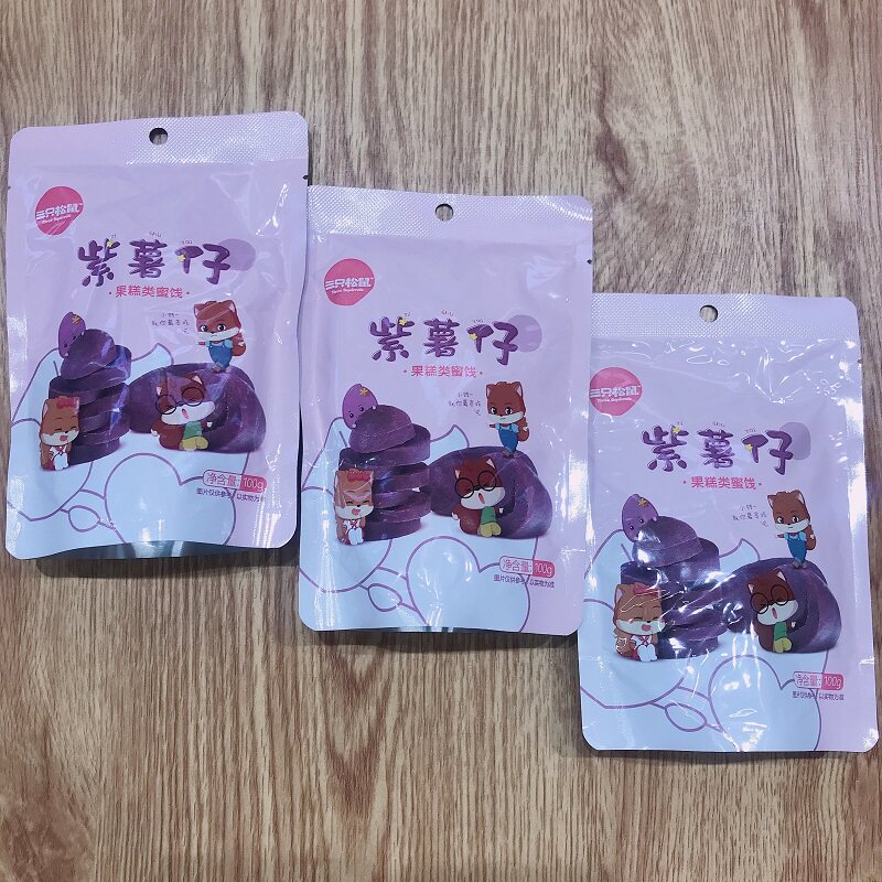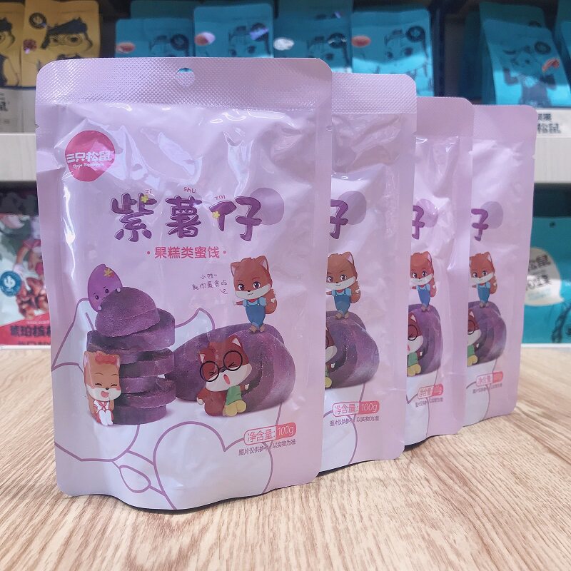 [Three Squirrels_Purple Sweet Potato Chips 100g X 3 Bags]Snack Food Purple Sweet Potato Strips Sweet Potato Chips Sweet Potato Chips