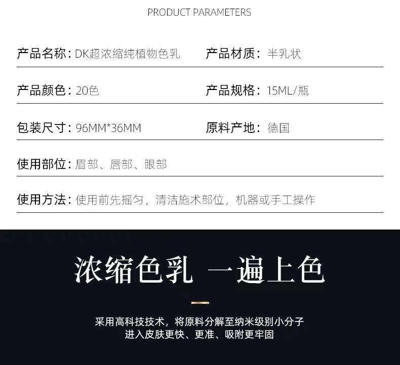 German Dk Tattoo Pigment Semi-Permanent Eyebrow Liquid Lip Tint Eyeliner Black Eyeliner Plant-Based Easy to Color