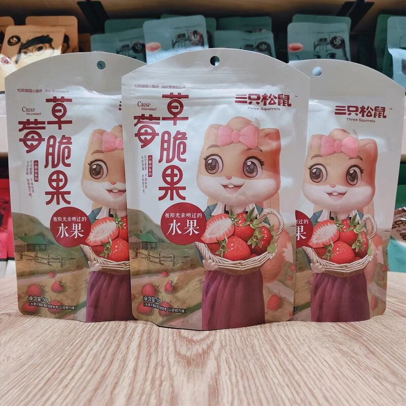 Three Squirrels Strawberry Crisps 50g X 3 Bags Freeze-Dried Strawberry Dried Fruit Snacks Candied Fruit Snacks Preserved Fruit