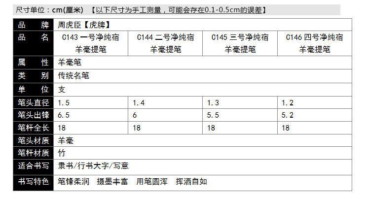 Color Classification No. 4 Pure Pure Sheep Hair[Out Front 5.2cm],No. 3 Pure Pure Sheep Hair[Out Front 5.5cm],No. 2 Pure Pure Sheep Hair[Out Front 6cm],No. 1 Pure Pure Sheep Hair[Out Front 6.5cm],No. 1, 2, 3 and 4 Pure Pure Sheep Hair 4-Piece Set Comes with a Pen Box