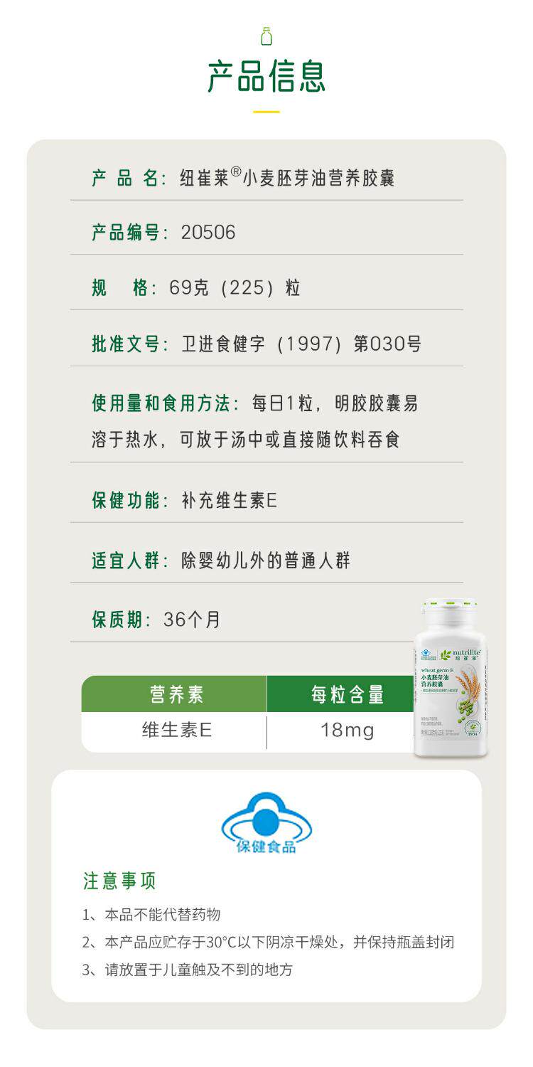 Amway Nutrilite wheat germ oil nutritional capsules 225 capsules domestic Ve adult wheat oil pregnant women vitamin E