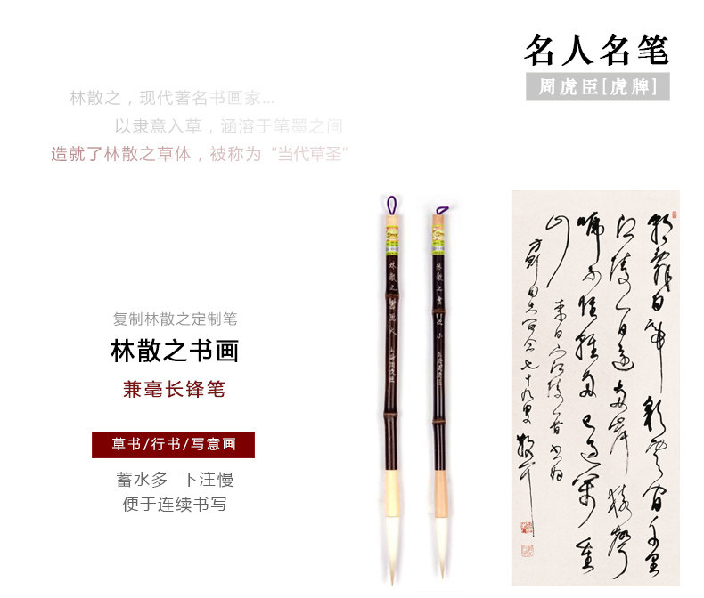 Authentic Zhou Huchen Calligraphy Brush Set, Lin Sanzhi Dual-Purpose Brush with Long Tip, Large-Sized Goat Hair Brush Set