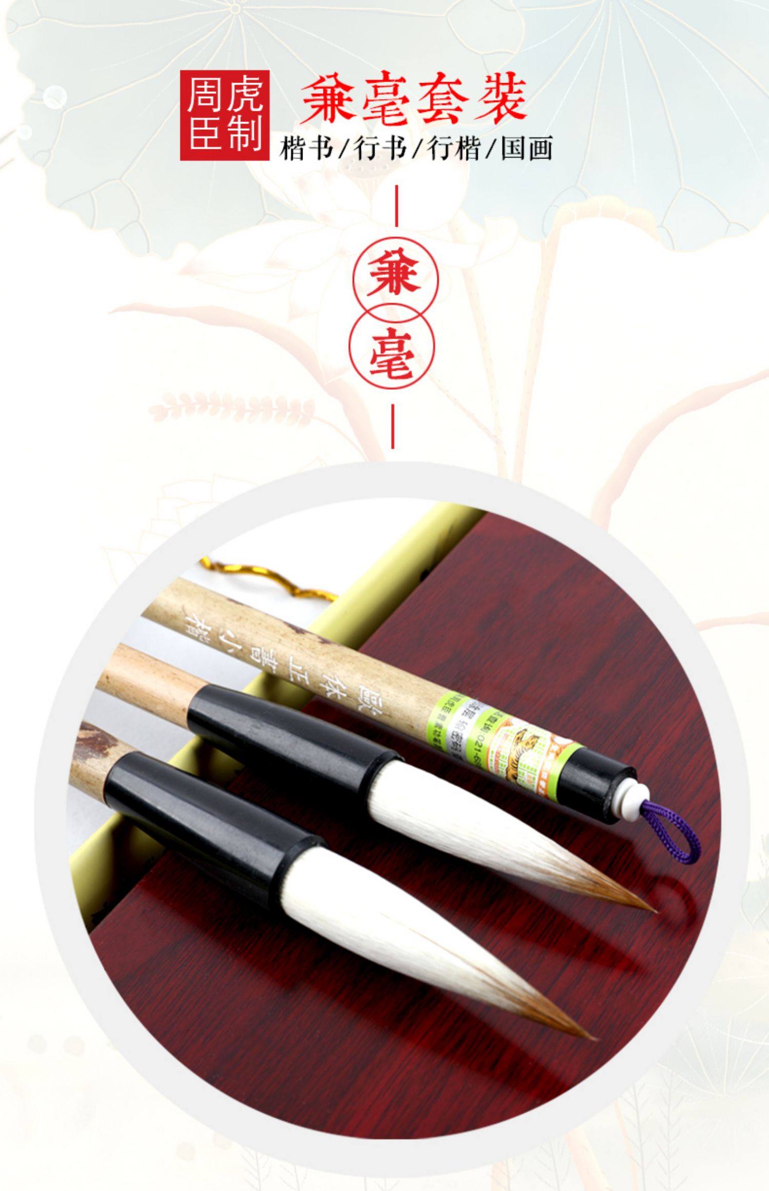 Authentic Zhou Huchen Wolf Hair and Mixed Goat Hair Brush Set, High-End Large and Medium-Sized Calligraphy Brushes for Adults, Professional Use, Liu Yan Hua Ming