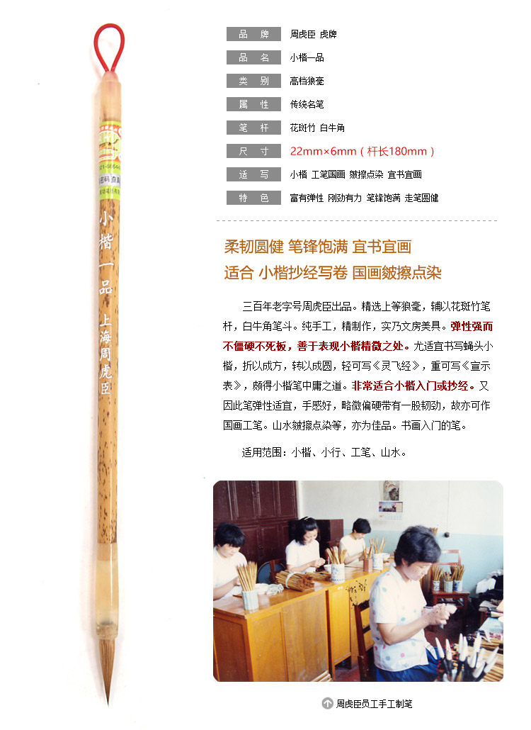Authentic Zhou Huchen Calligraphy Brush, High-End Pure Wolf Hair, Small Regular Script, Specialized for Copying, First-Grade Calligraphy Brush, Small Size Imperial Brush