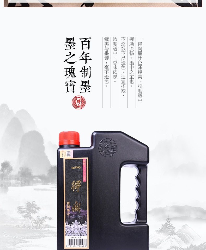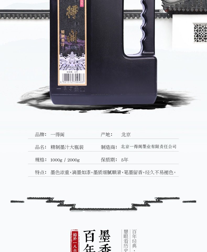 Authentic Yidege Refined Ink 1000g Large Barrel Wholesale High-Grade Calligraphy and Painting Ink Brush Ink