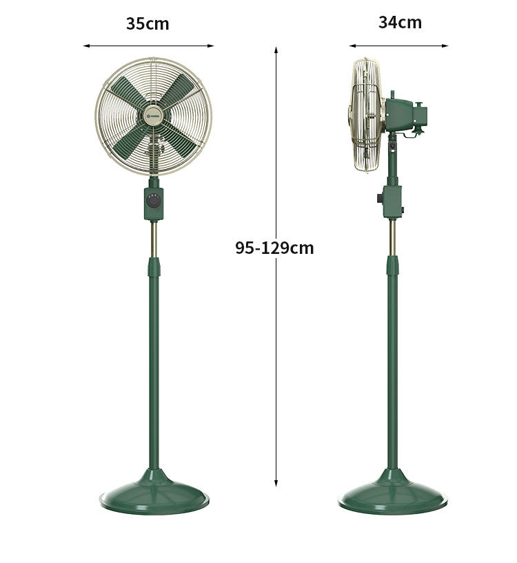 Antique Floor Fan, Retro Household Vertical All-Metal Oscillating Fan with Strong Wind Power for Living Room, Dining Room, Office, Nostalgic Electric Fan