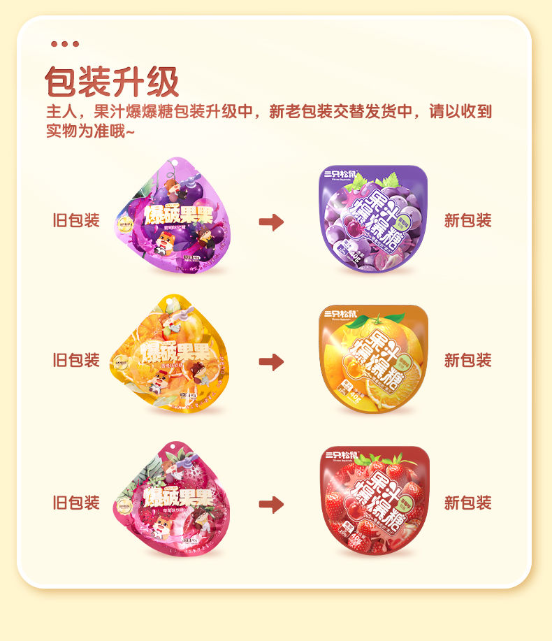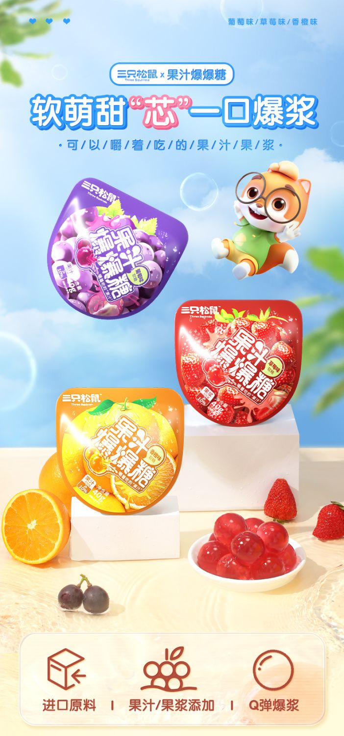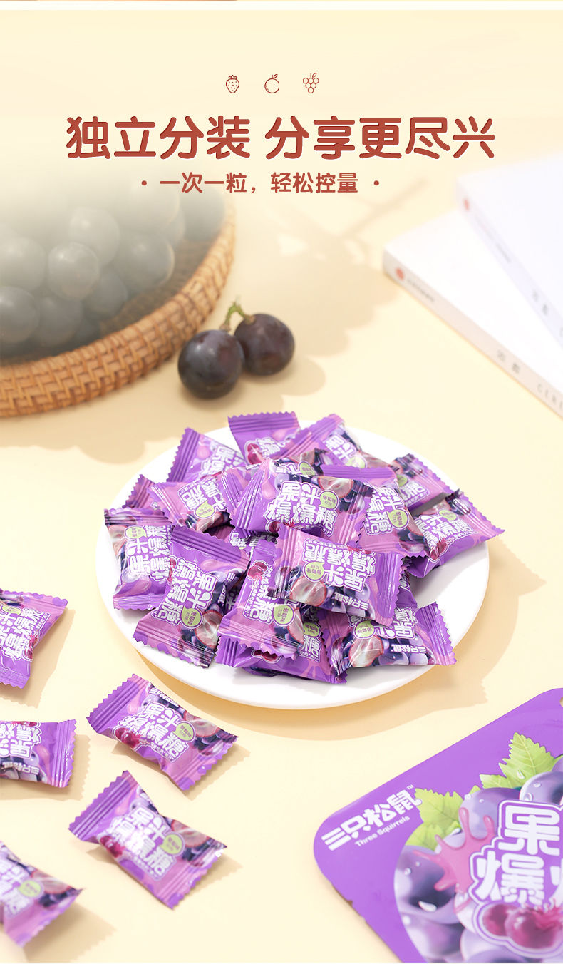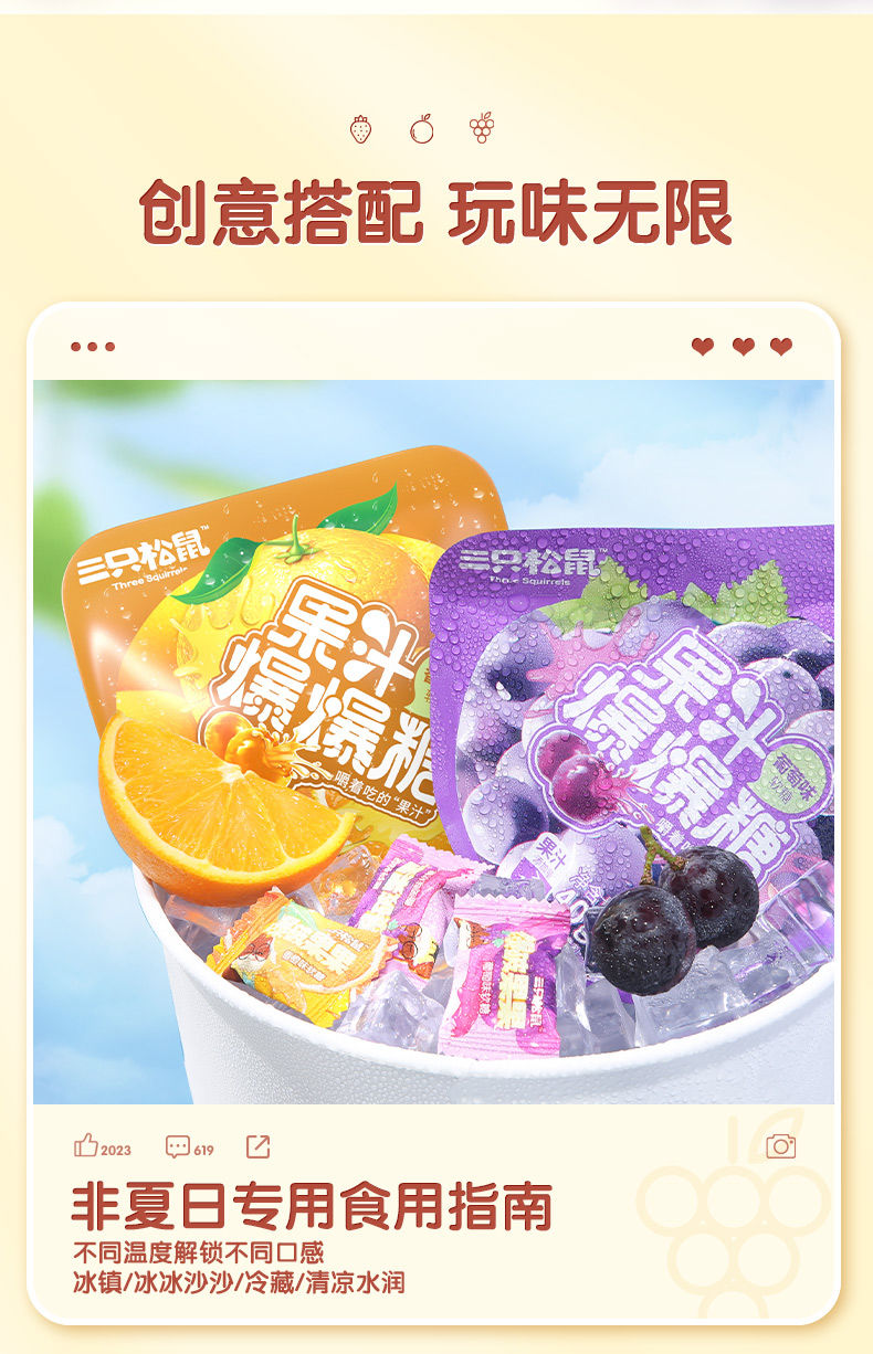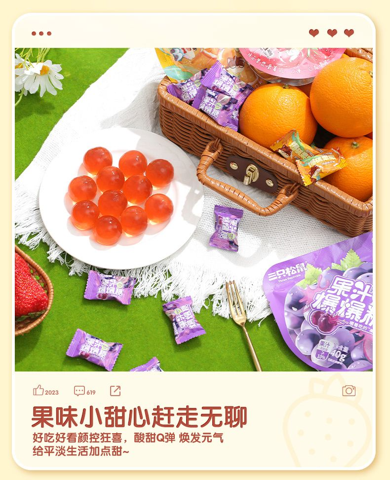 Three Squirrels_Explosive Fruit Candy 40g X 3 Bags Fruit-Flavored Gummy Candy Rubber Candy Snacks for Foodies