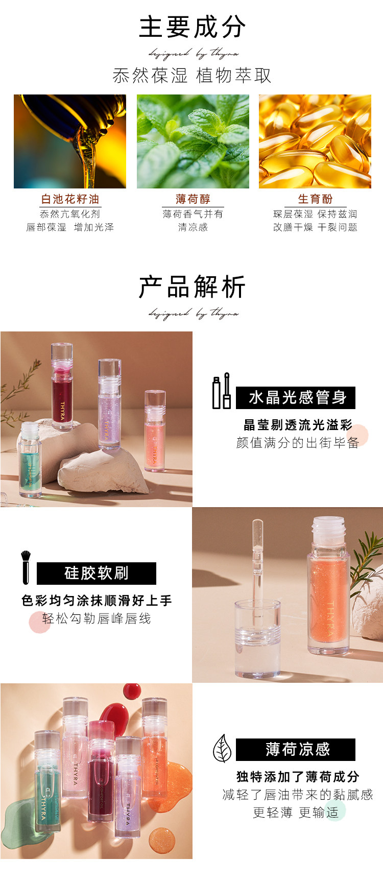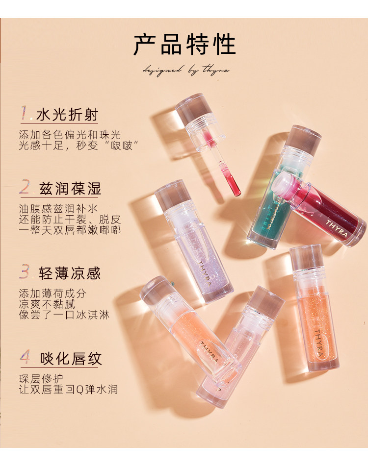 Thyra Tanya Lip Oil C02 Lip Gloss for Women Moisturizing and Nourishing Glass Lips Transparent Plump Lips Water Gloss Lip Glaze Tanya