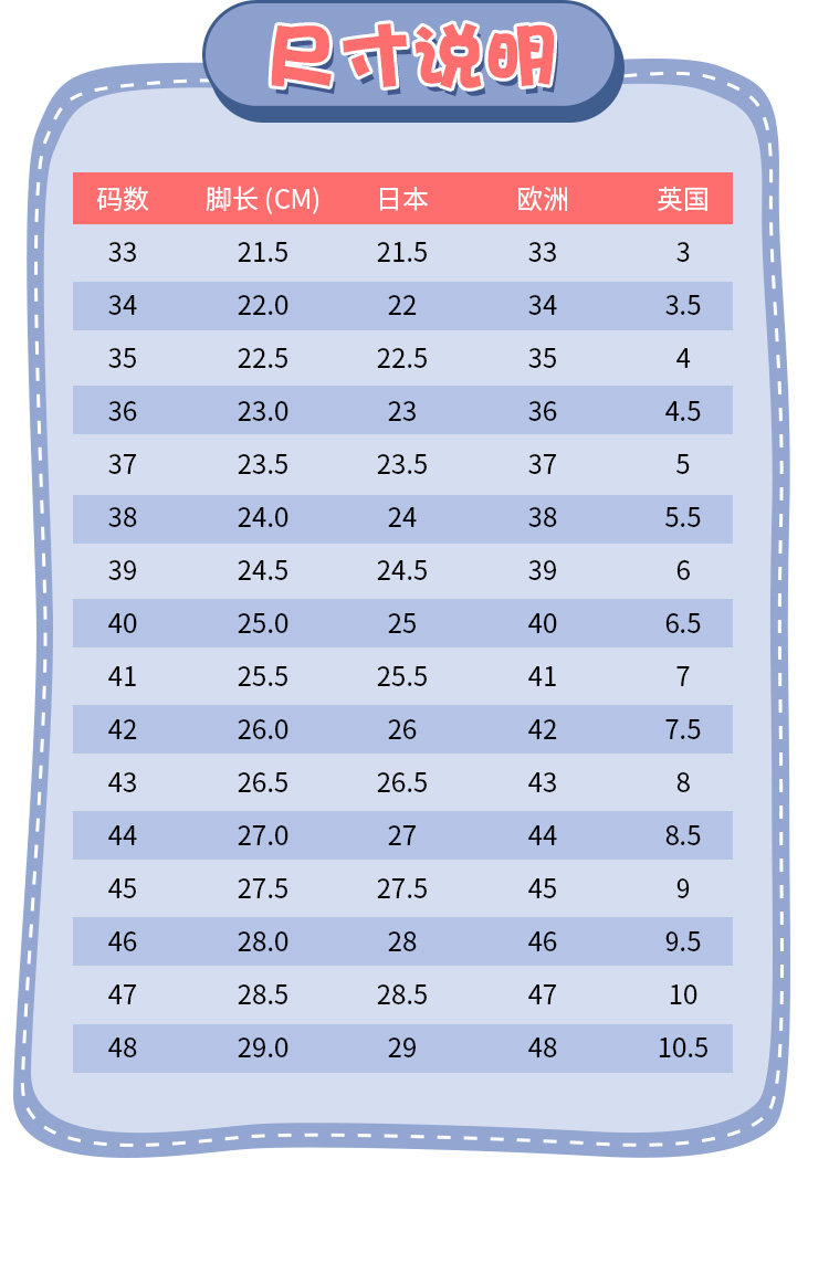 China (cm) 36 - 37 38 - 39 40 - 42 43 - 44 45 - 47