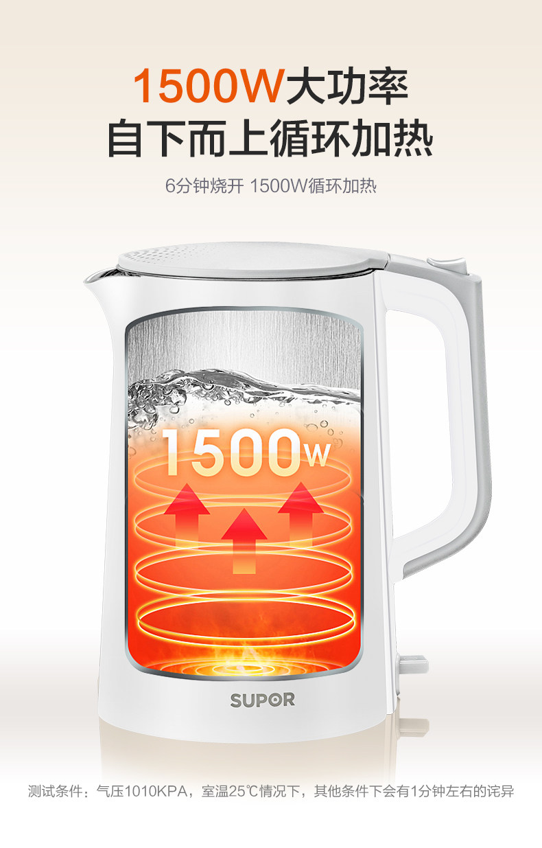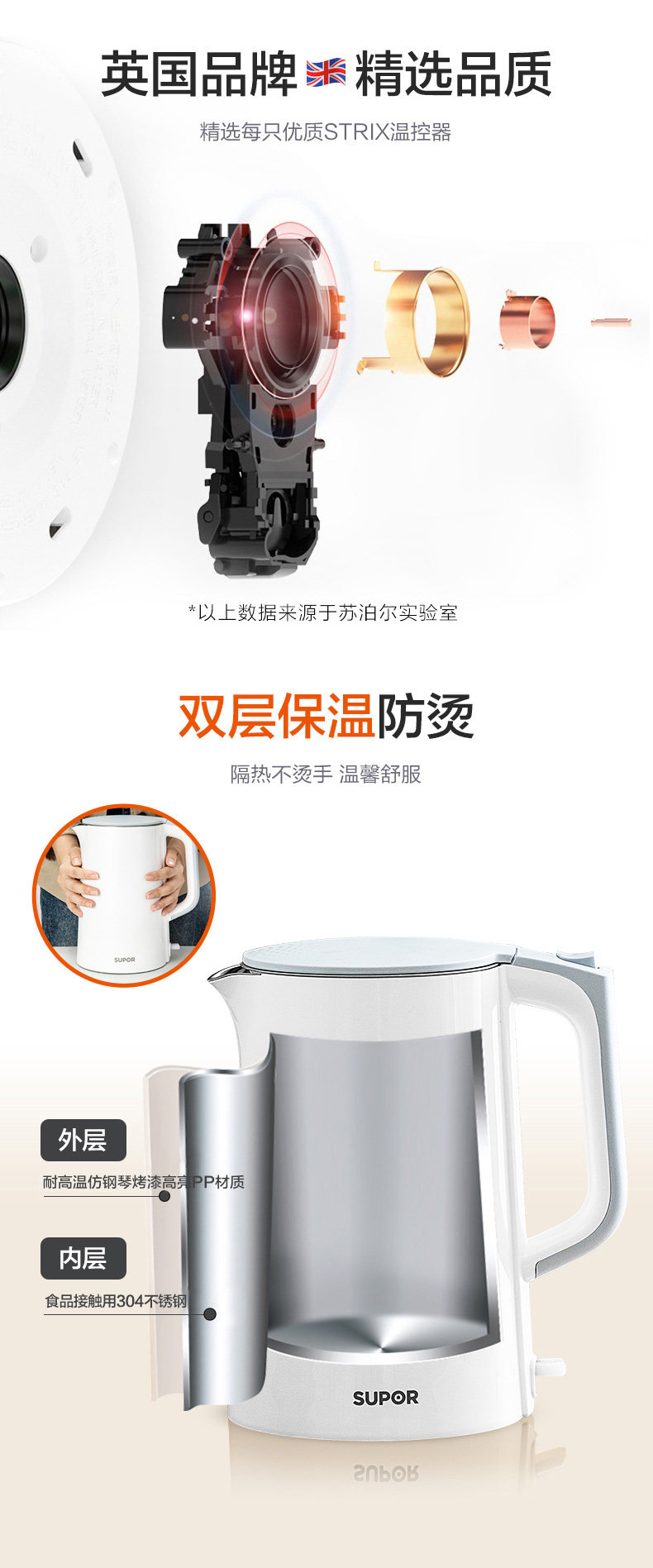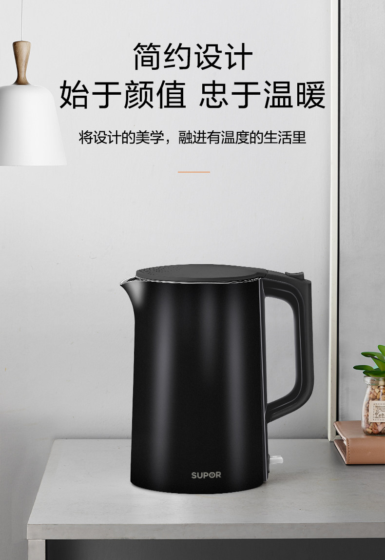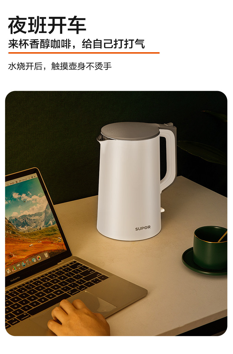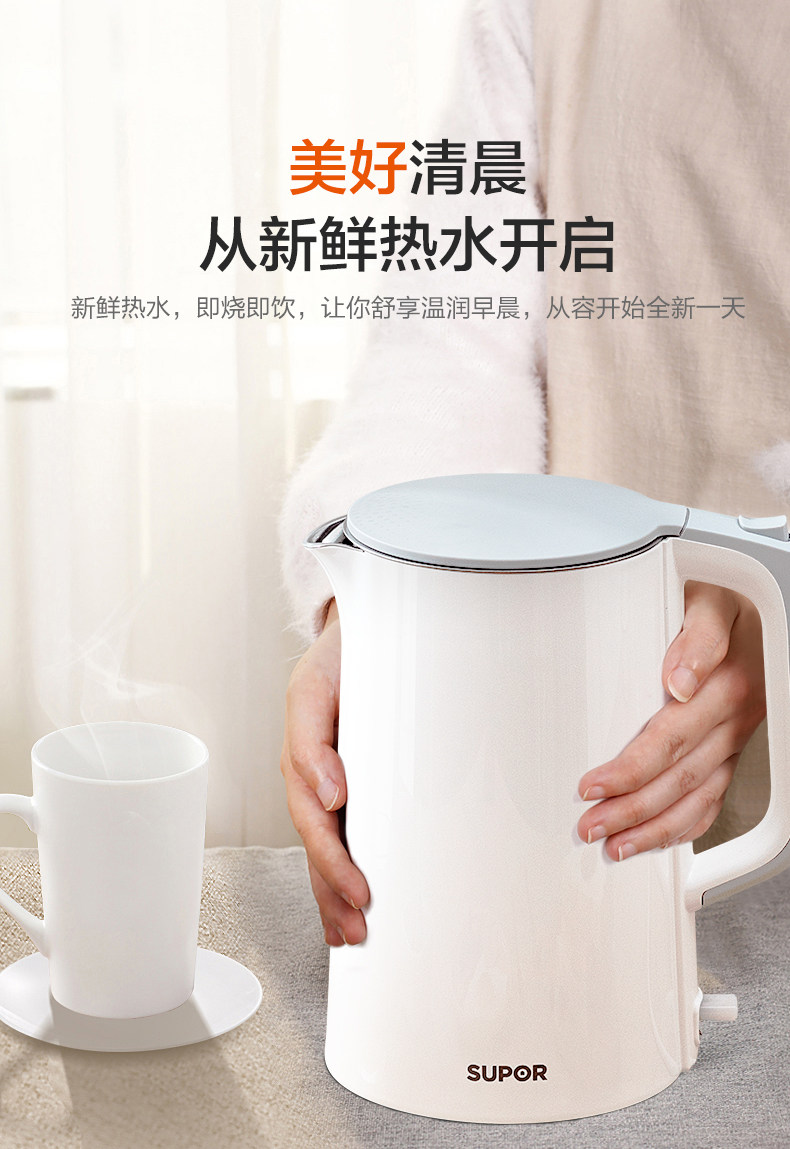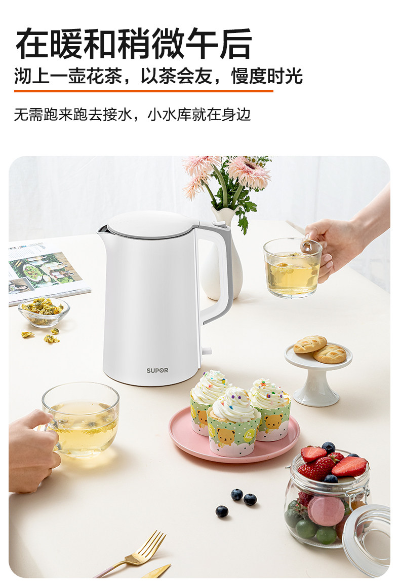 Supor Electric Kettle with Integrated Insulation, Automatic Power-Off, Household Hot Water Boiler, Electric Tea Kettle
