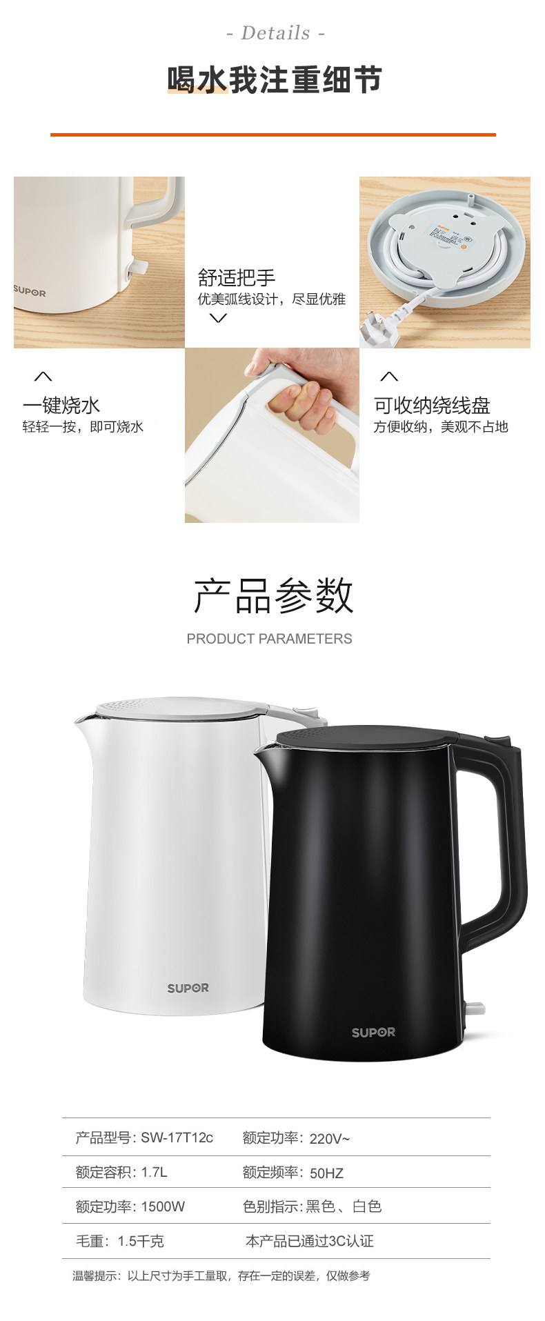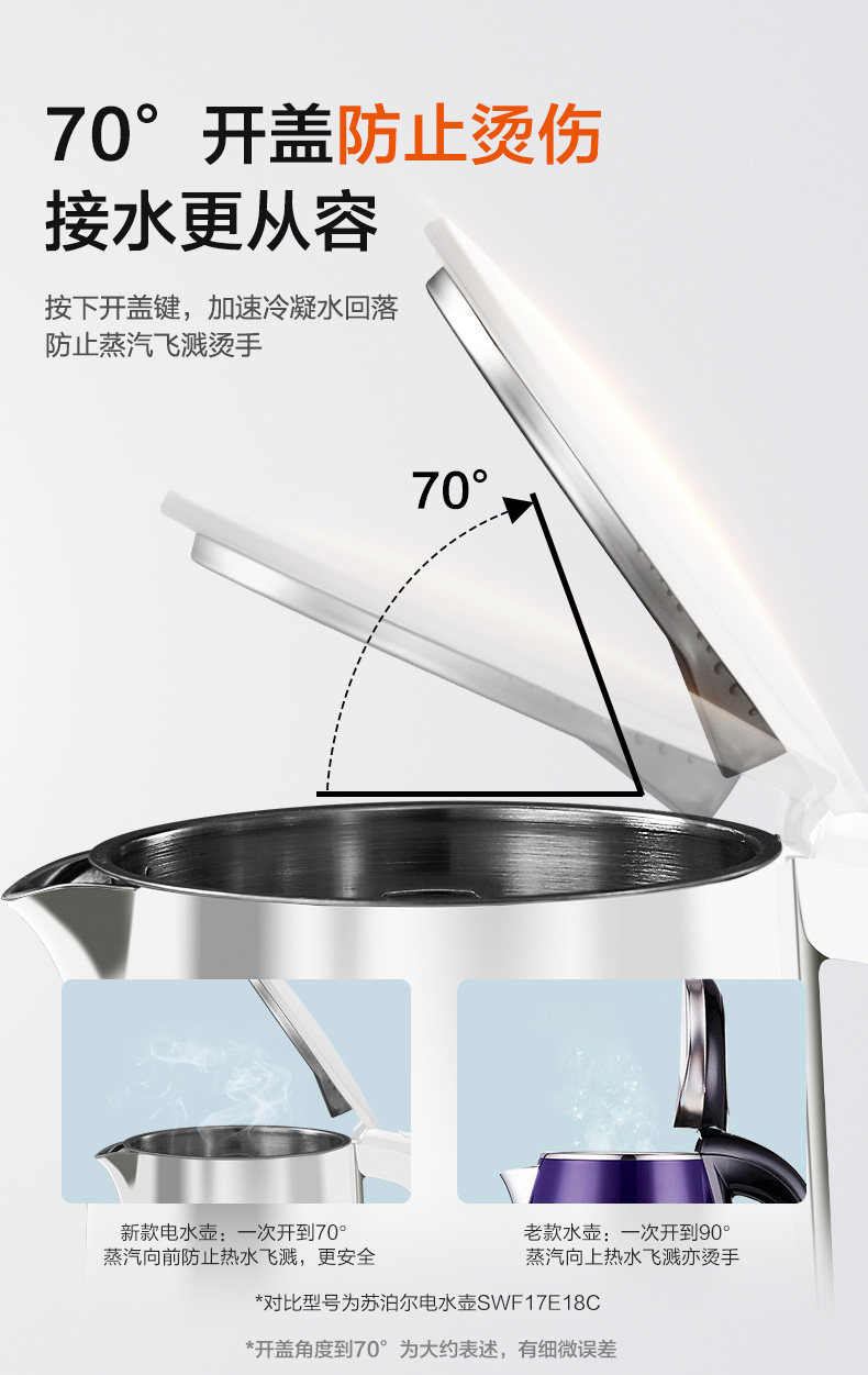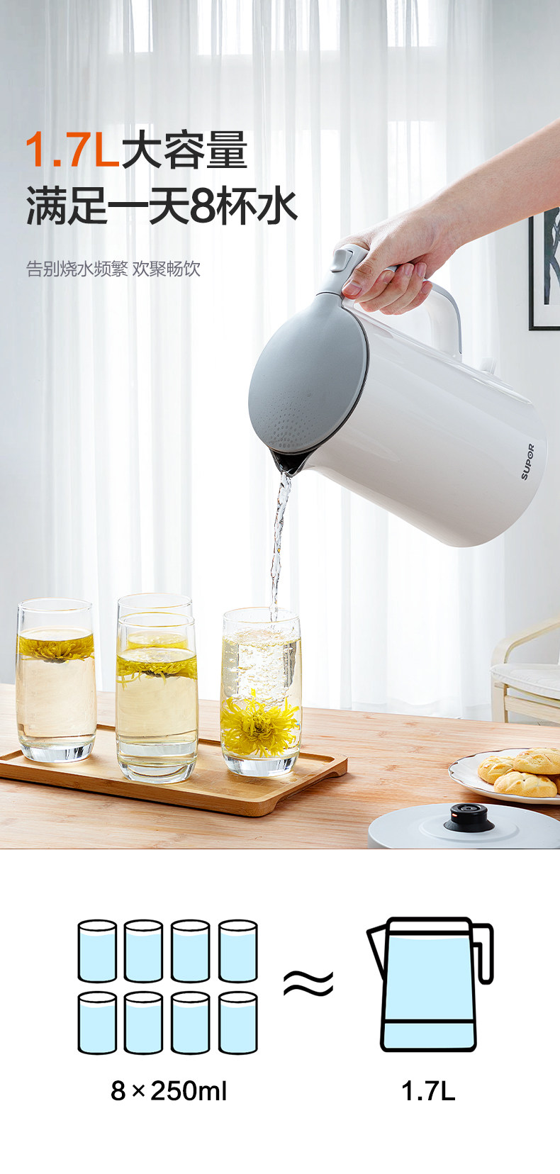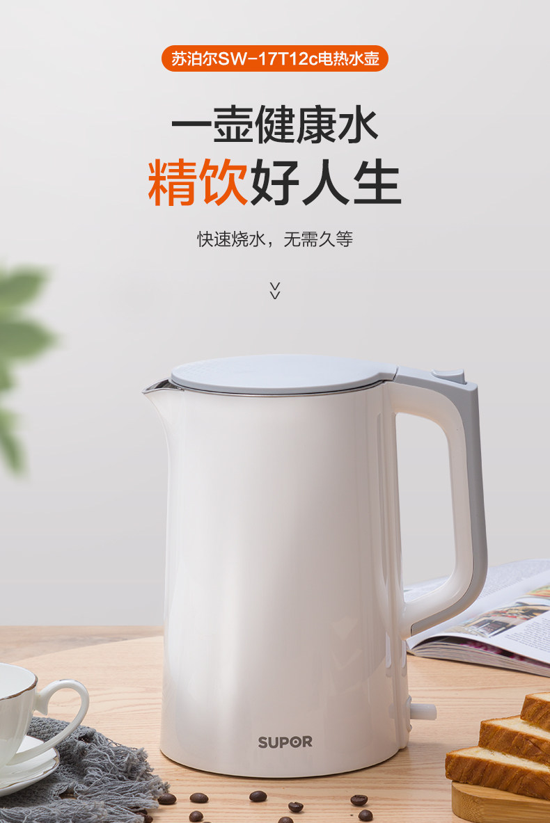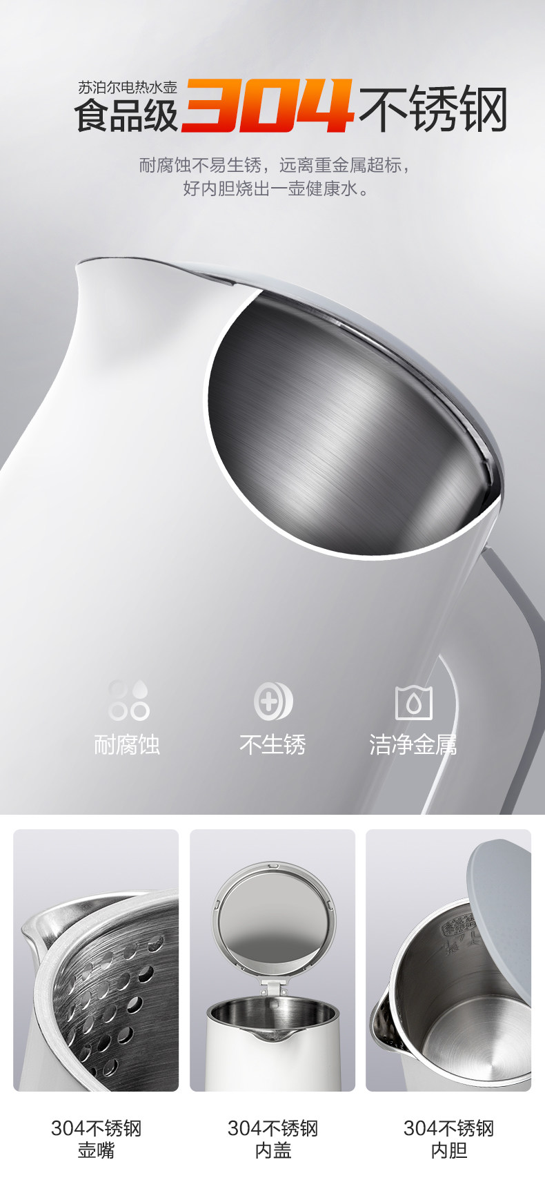 Supor Electric Kettle with Integrated Insulation, Automatic Power-Off, Household Hot Water Boiler, Electric Tea Kettle