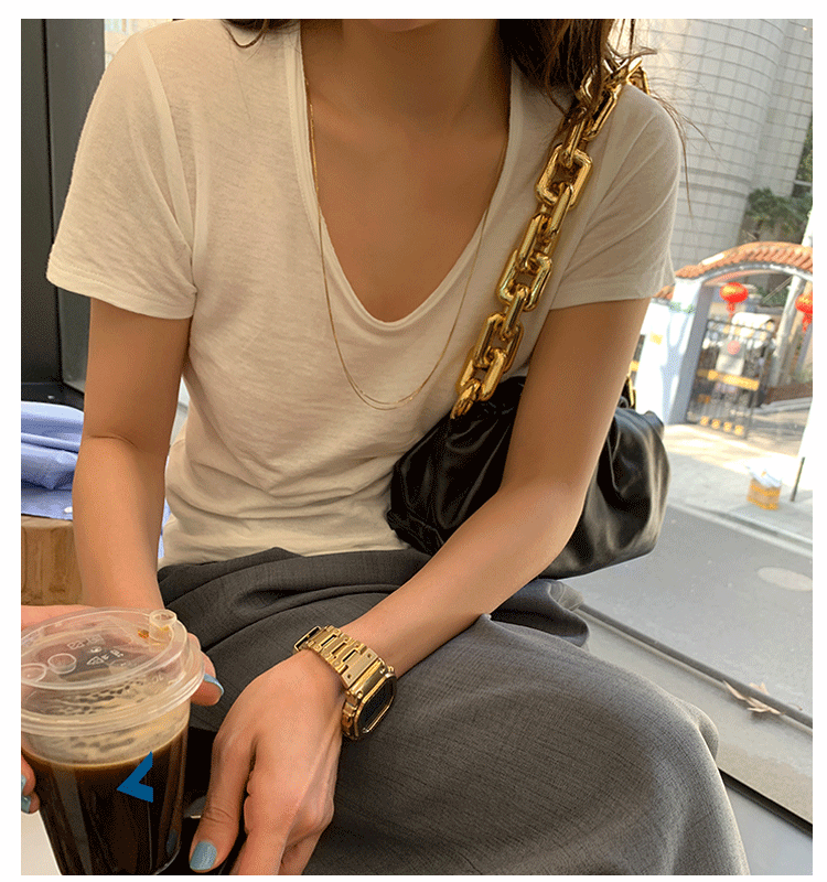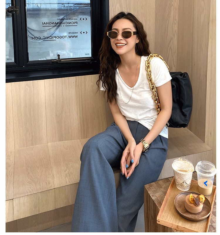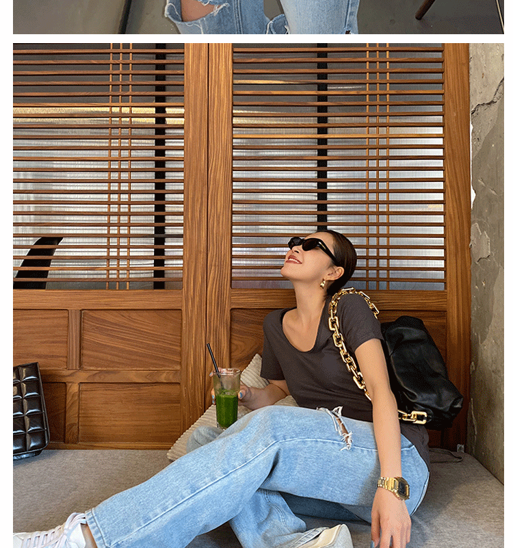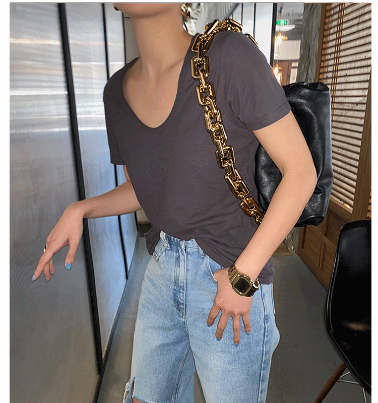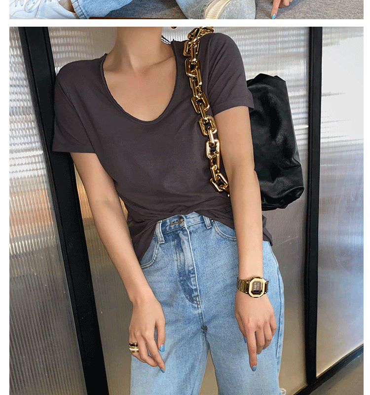 White T-Shirt for Women 2025 Spring and Summer Tattered Slim Short-Sleeved Fashionable V Neck Pure Color Versatile Sweetheart Collar Bottoming Top Trbottomy