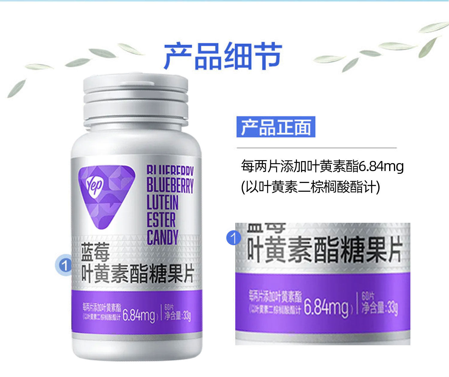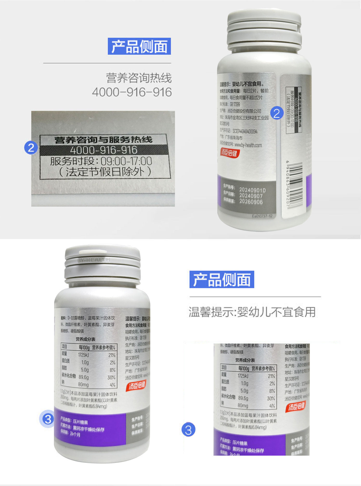 3 bottles of combination pack Tomson By-Health Blueberry Lutein Candy Tablets 60 tablets for adults, children and teenagers eyes genuine