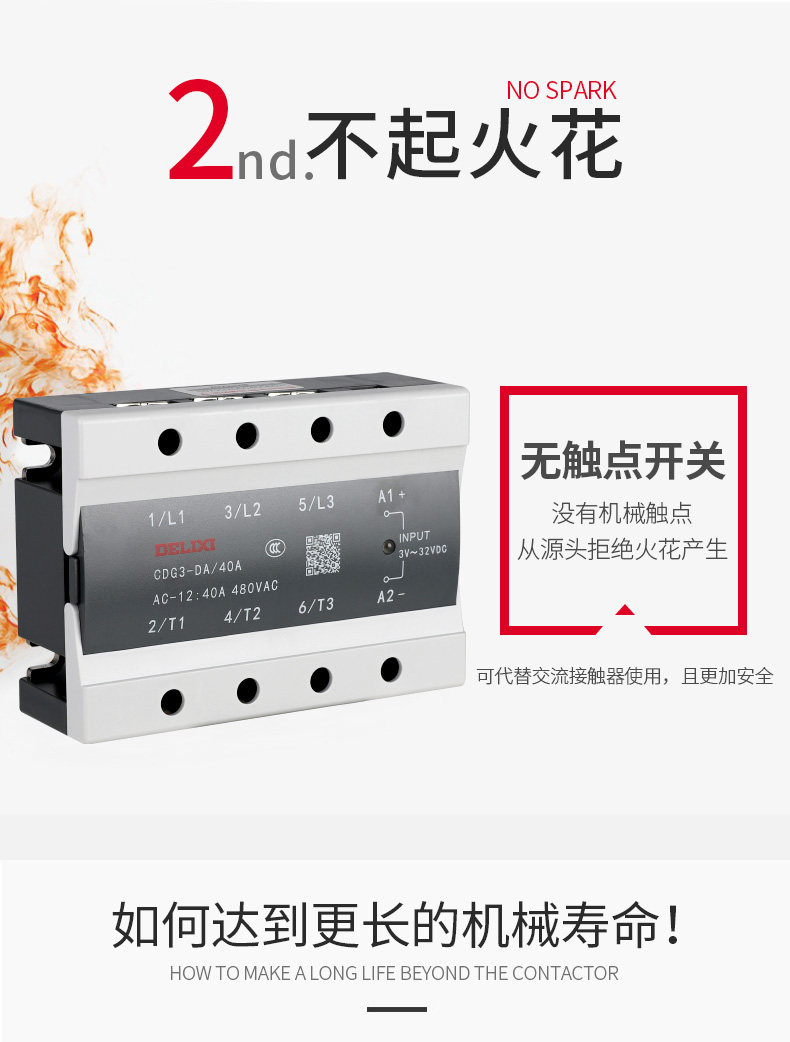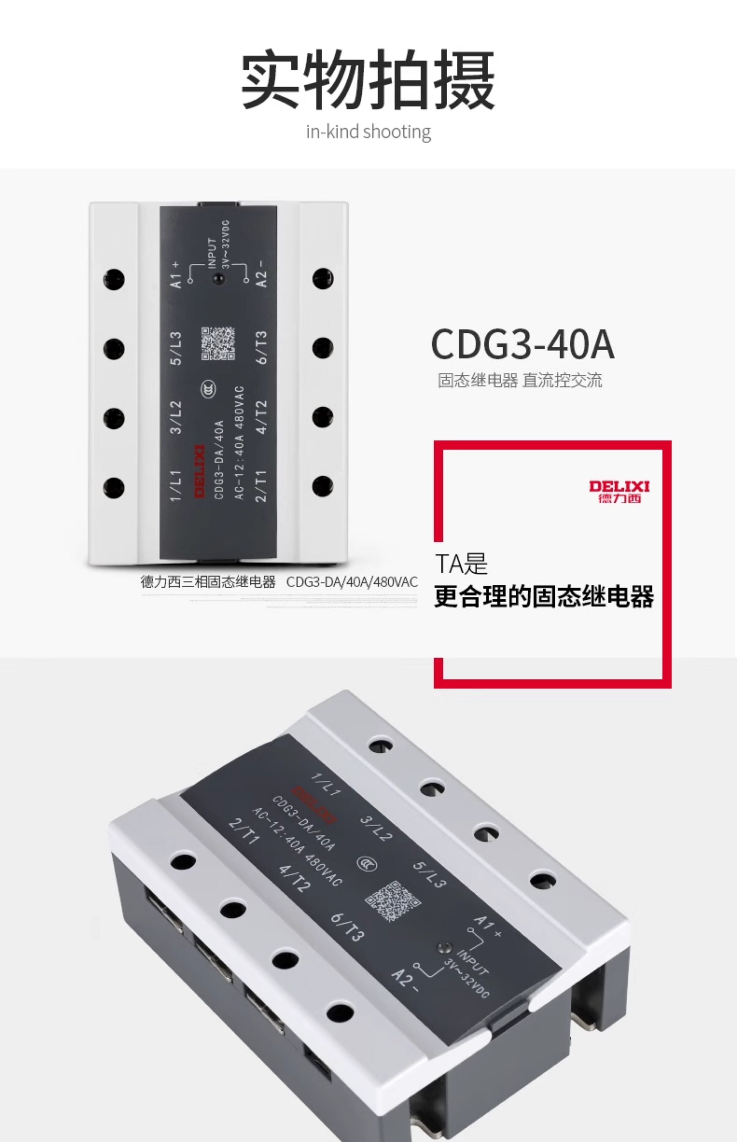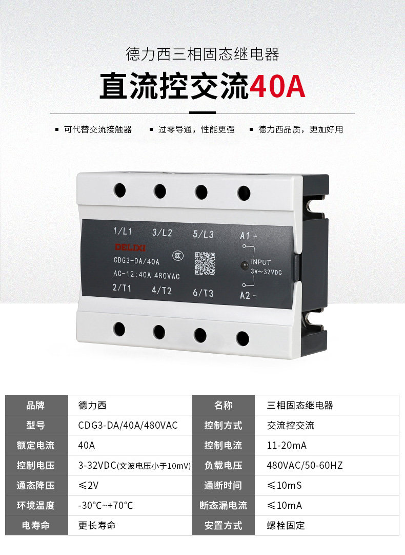 Delixi 100A Three-Phase Solid State 380V Relay Dc Controlled Ac Contactor Ssr-Da40A