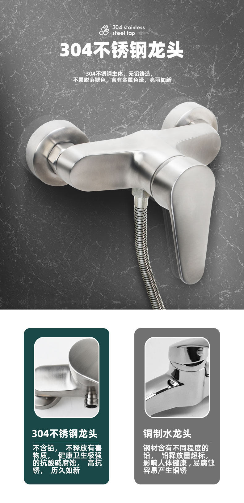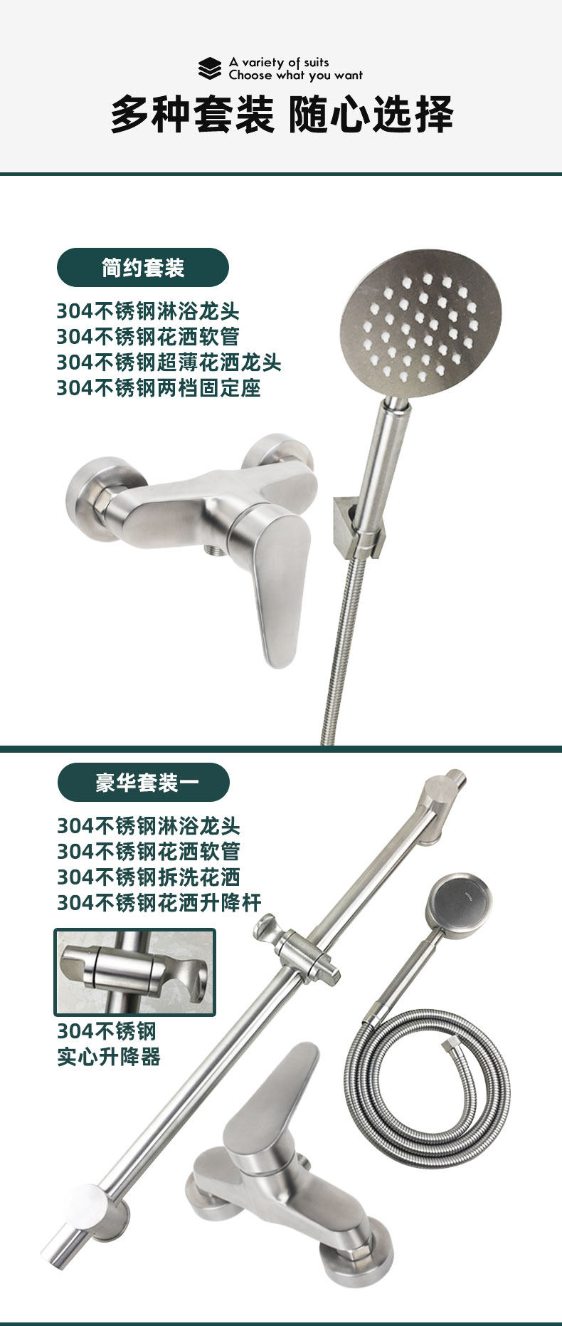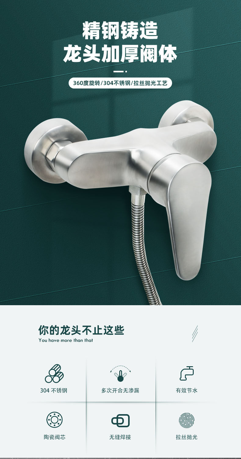 304 Stainless Steel Wall-Mounted Hot and Cold Household Bathtub Dual-Control Faucet Mixing Valve Shower Set Faucet