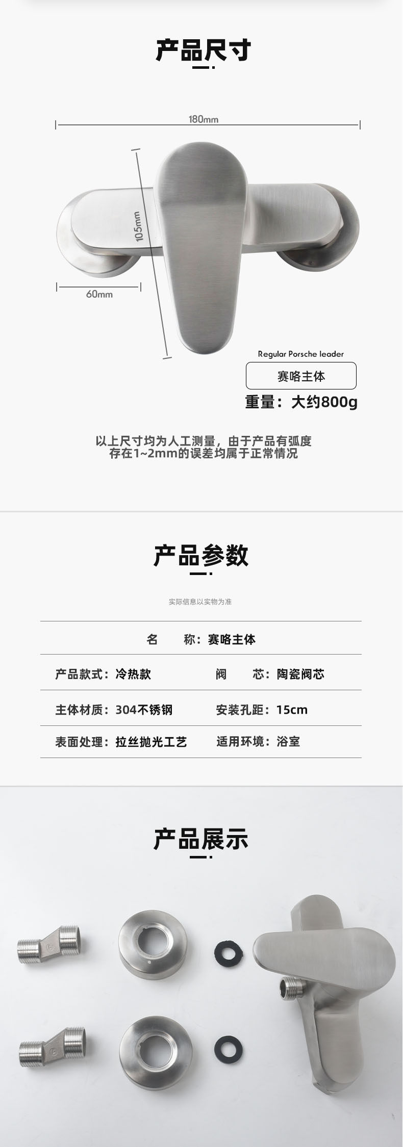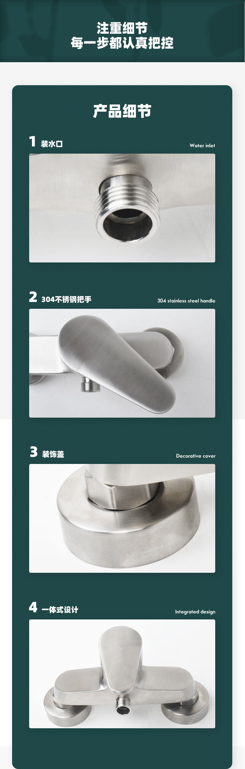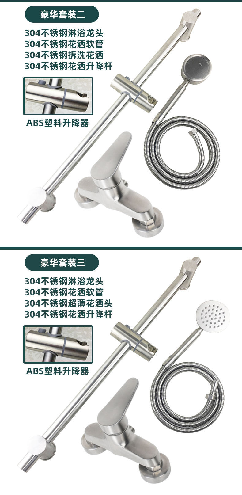 304 Stainless Steel Wall-Mounted Hot and Cold Household Bathtub Dual-Control Faucet Mixing Valve Shower Set Faucet
