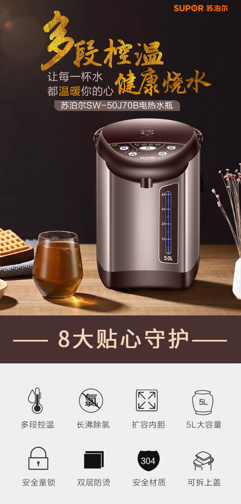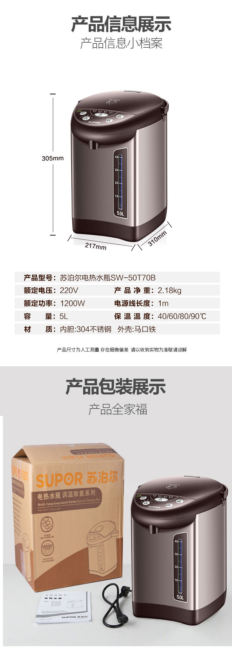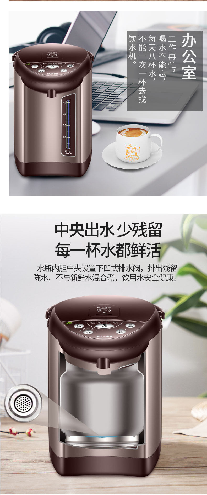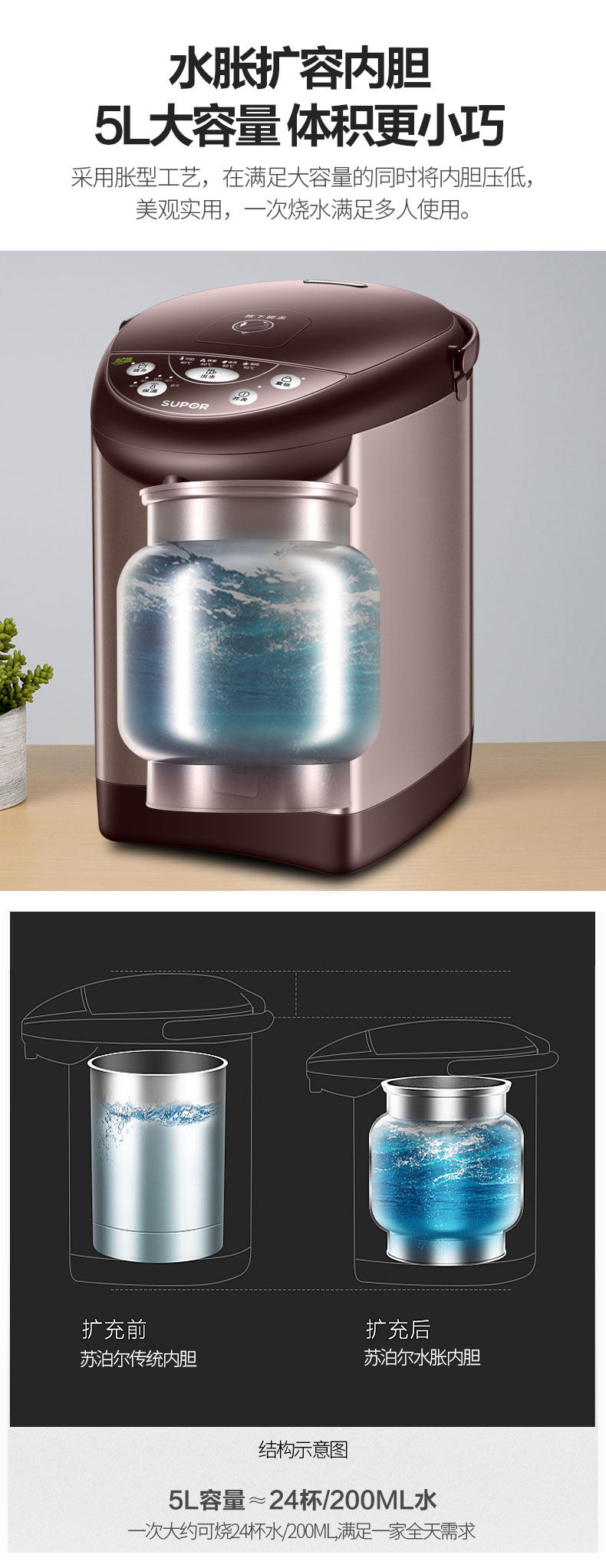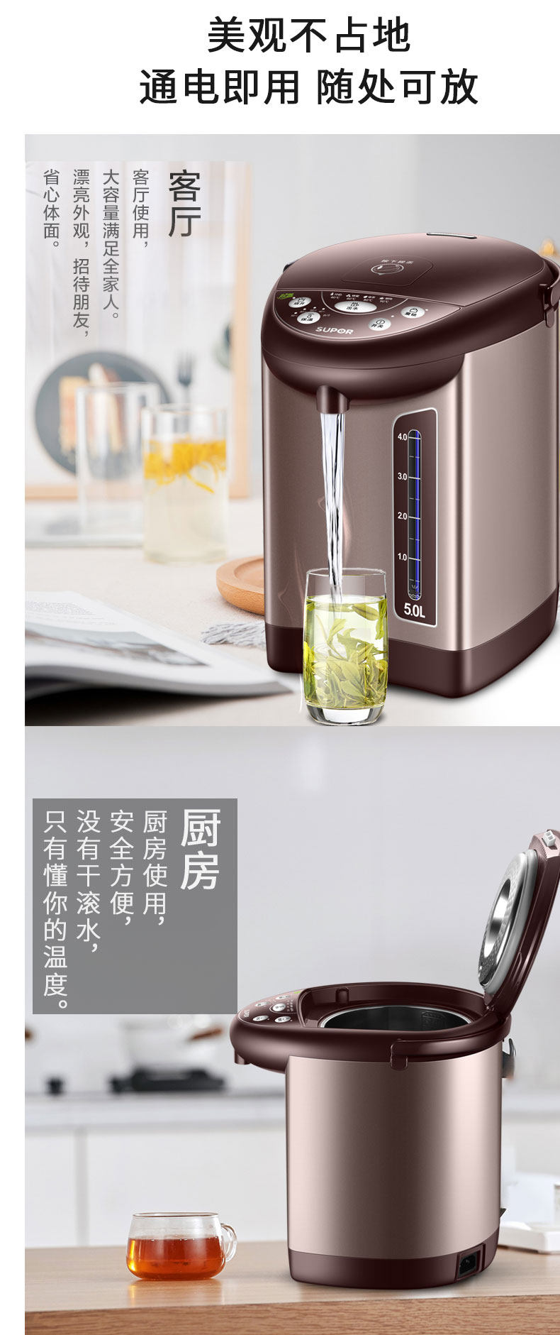 Supor Constant Temperature Electric Kettle 5L Large Capacity Household Electric Water Boiler Smart Automatic Water Boiling Kettle with Integrated Insulation