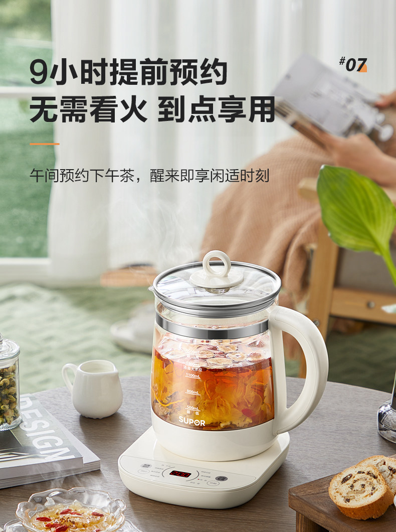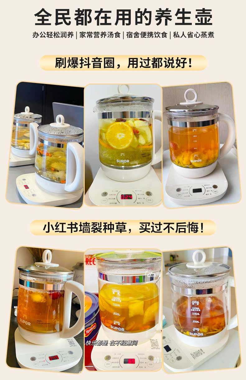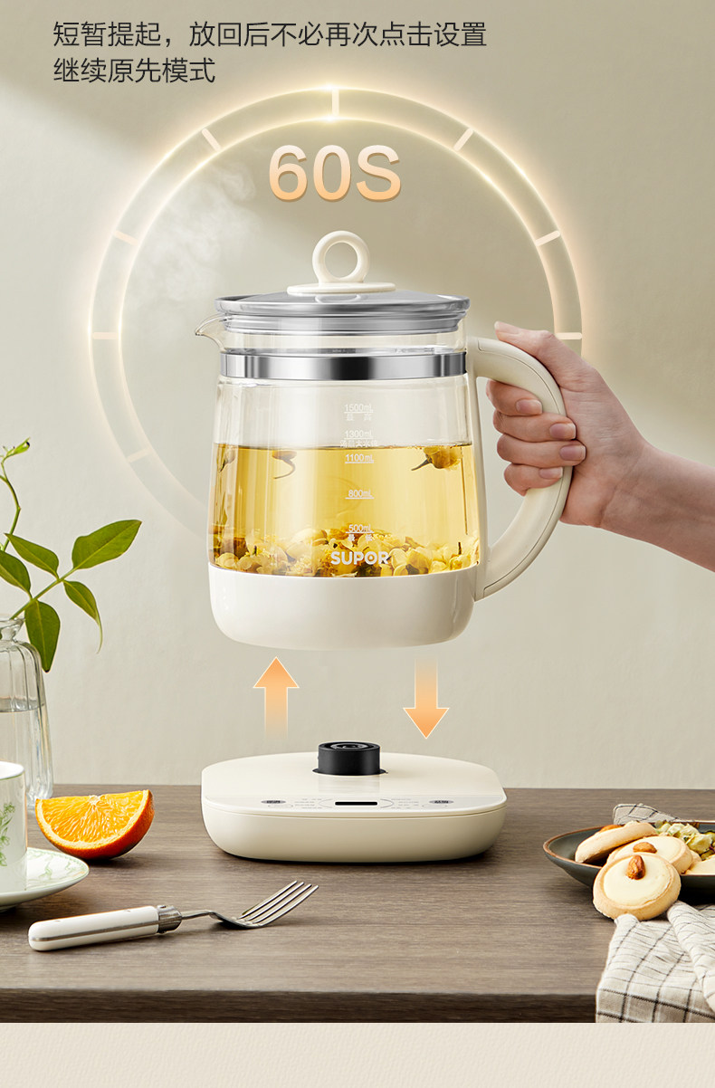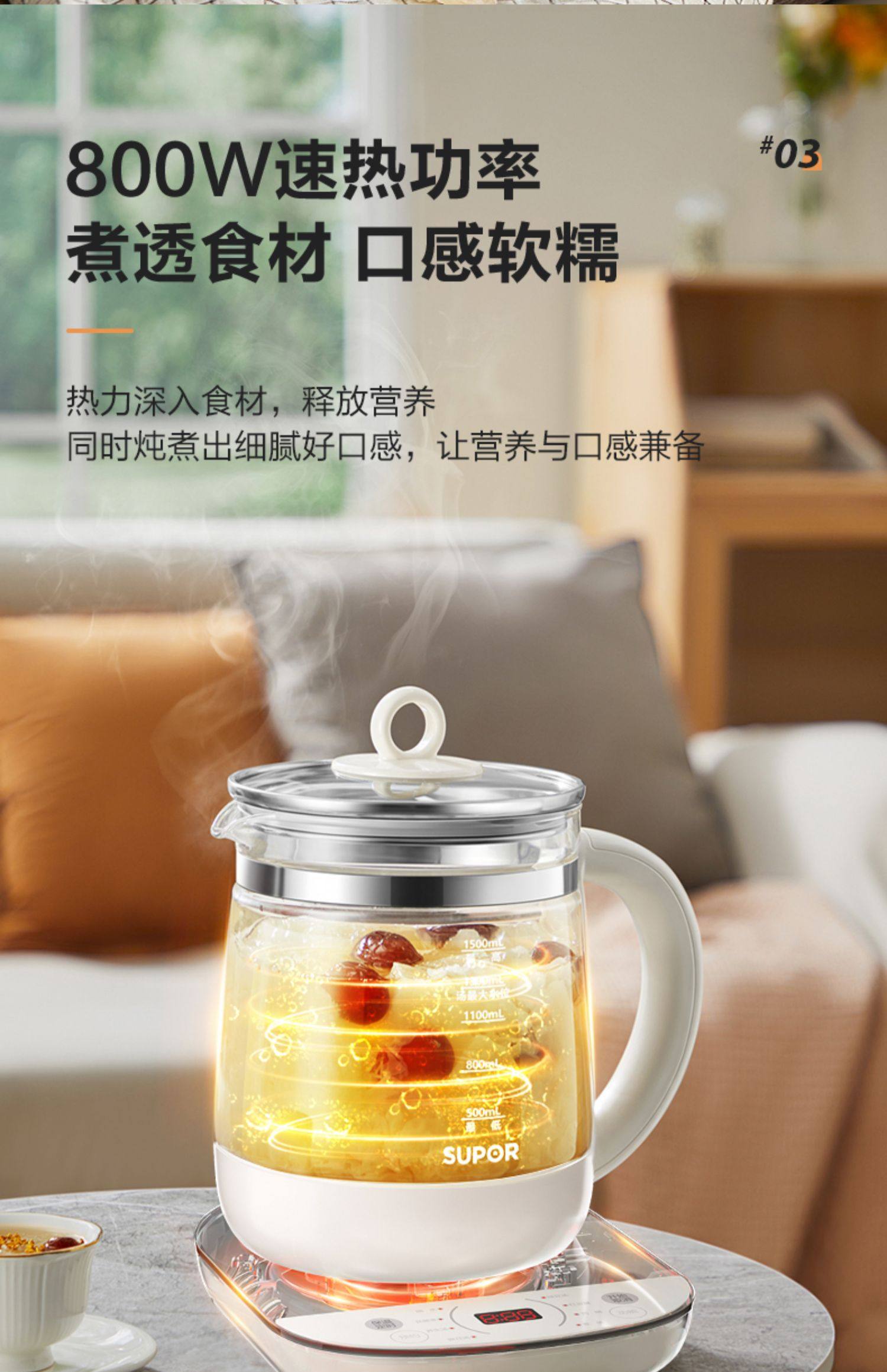 Supor Health Pot for Stewing and Boiling, Multifunctional for Home and Office, Small Electric Kettle for Boiling Water and Heating Tea, 2025 New Model