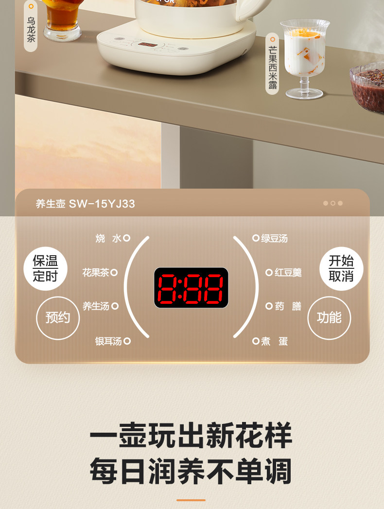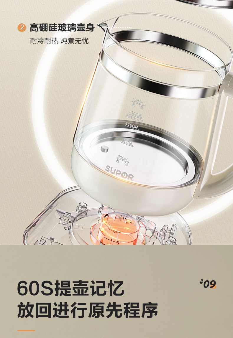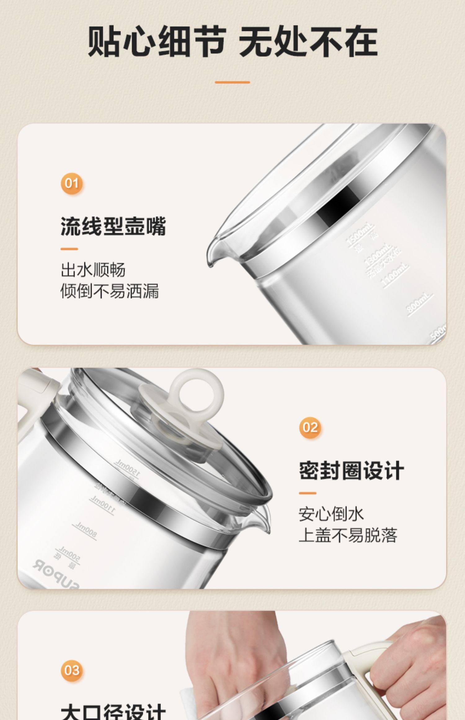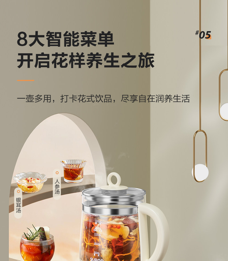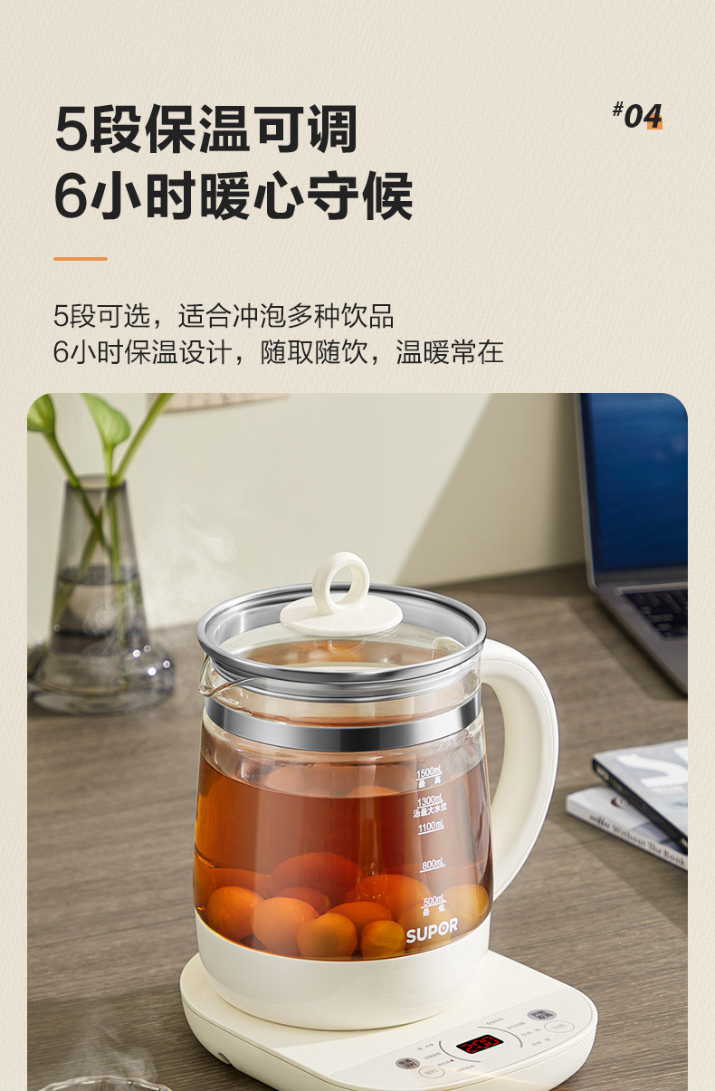 Supor Health Pot for Stewing and Boiling, Multifunctional for Home and Office, Small Electric Kettle for Boiling Water and Heating Tea, 2025 New Model