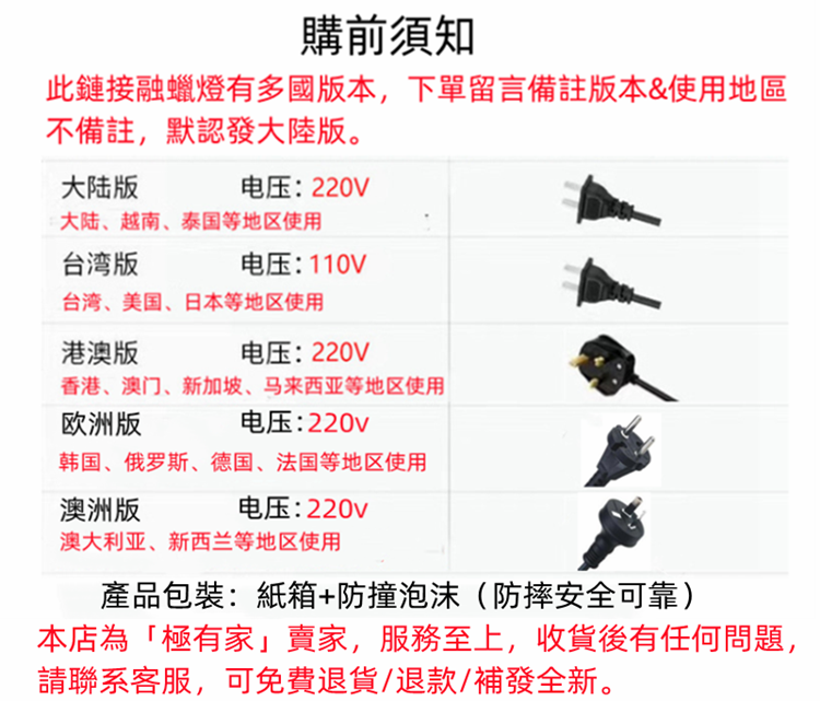 Plug Type 220V Hong Kong and Macau Version Malay English Regulations,110V Taiwan Version,Domestic Flat Plug