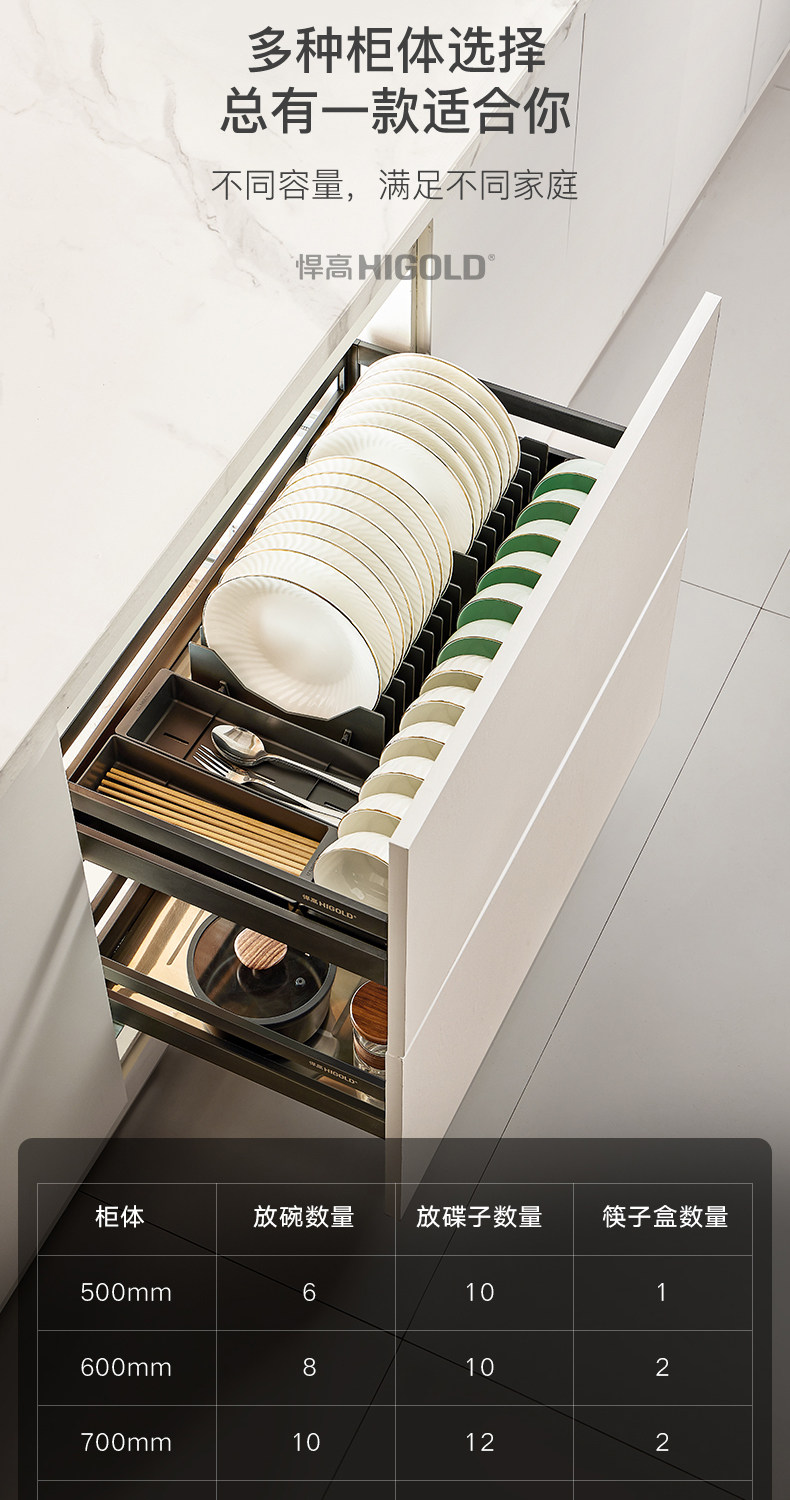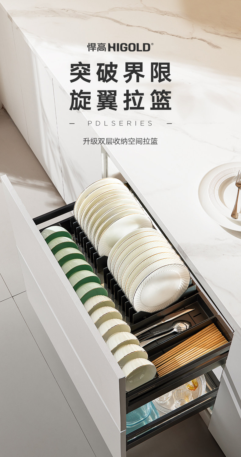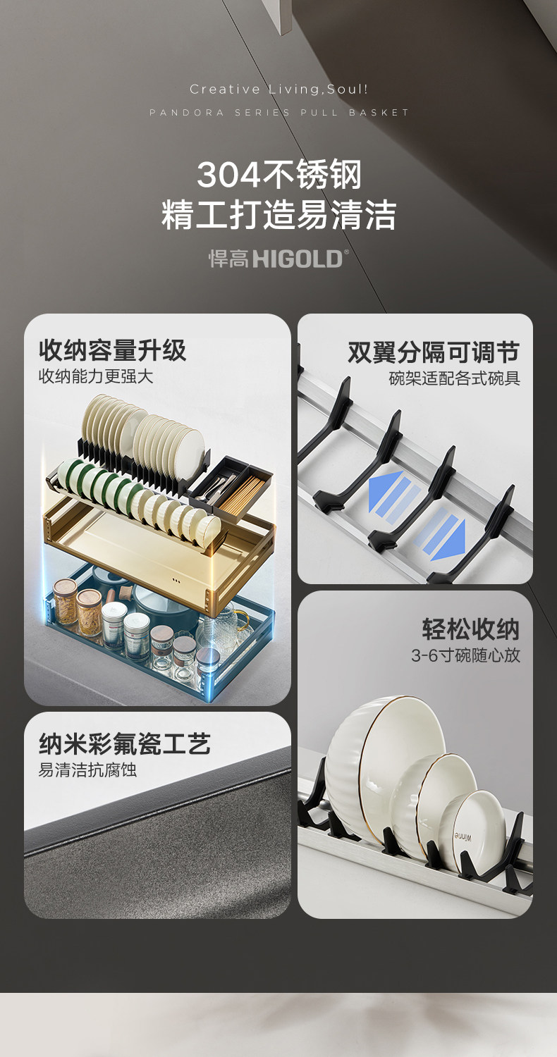 Higold/Higold Pull-Out Basket Kitchen Cabinet Pull-Out Basket 304 Stainless Steel Storage Double-Layer Drawer-Type Dish Rack 4136