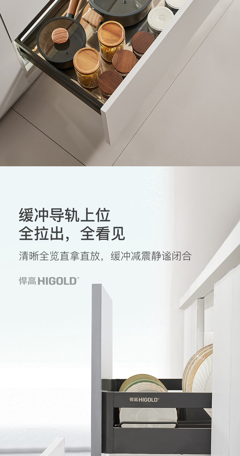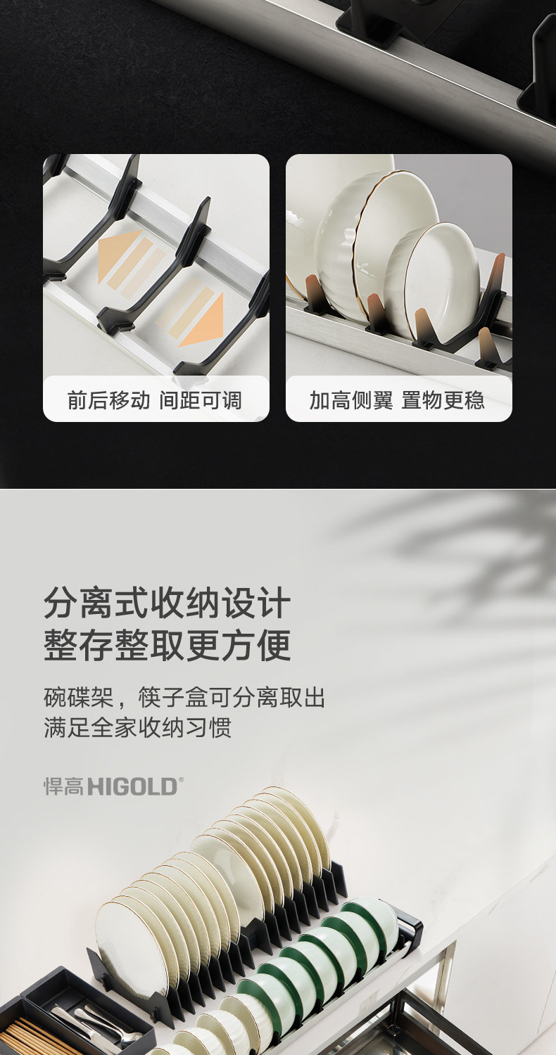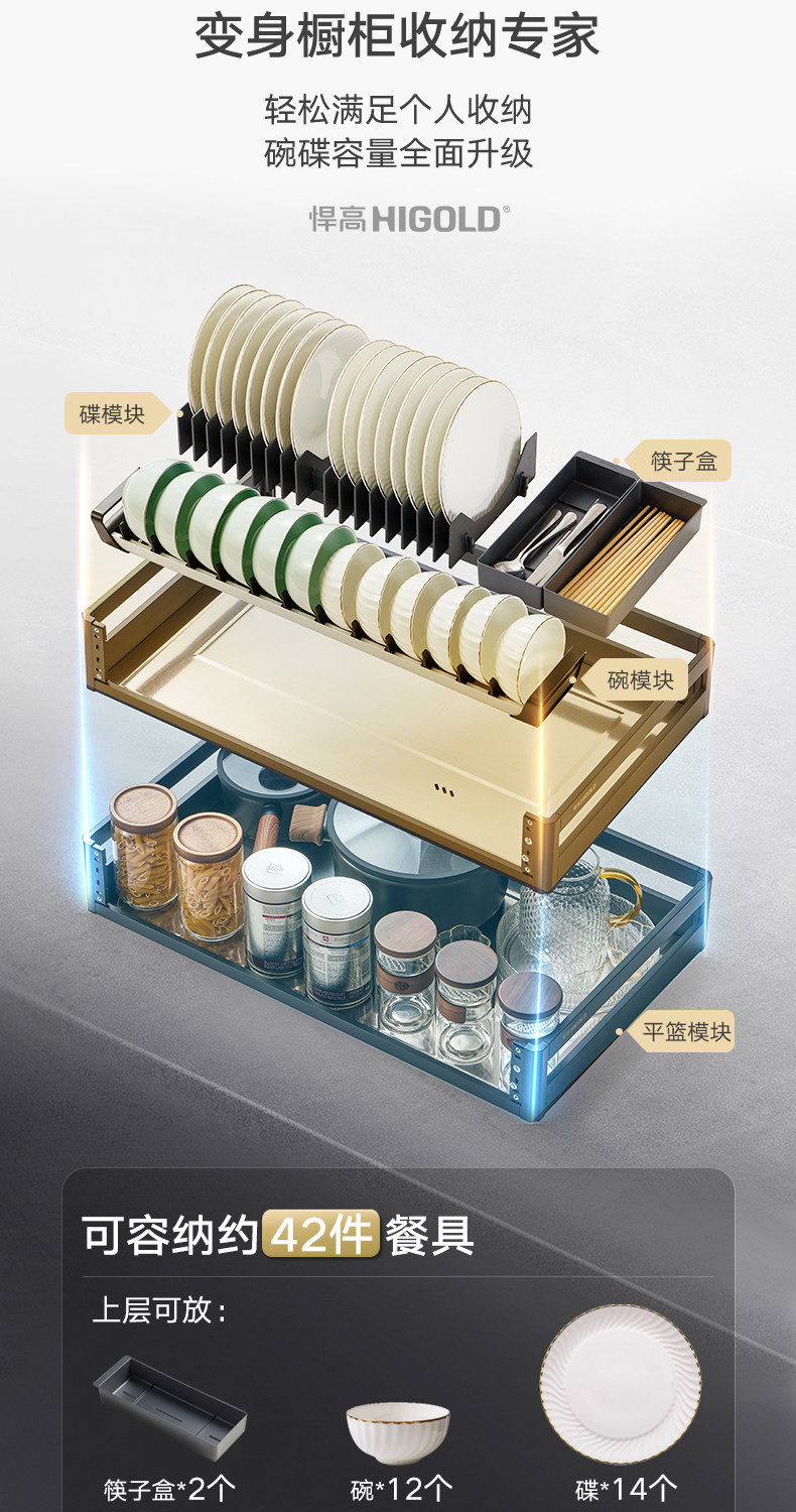 Higold/Higold Pull-Out Basket Kitchen Cabinet Pull-Out Basket 304 Stainless Steel Storage Double-Layer Drawer-Type Dish Rack 4136