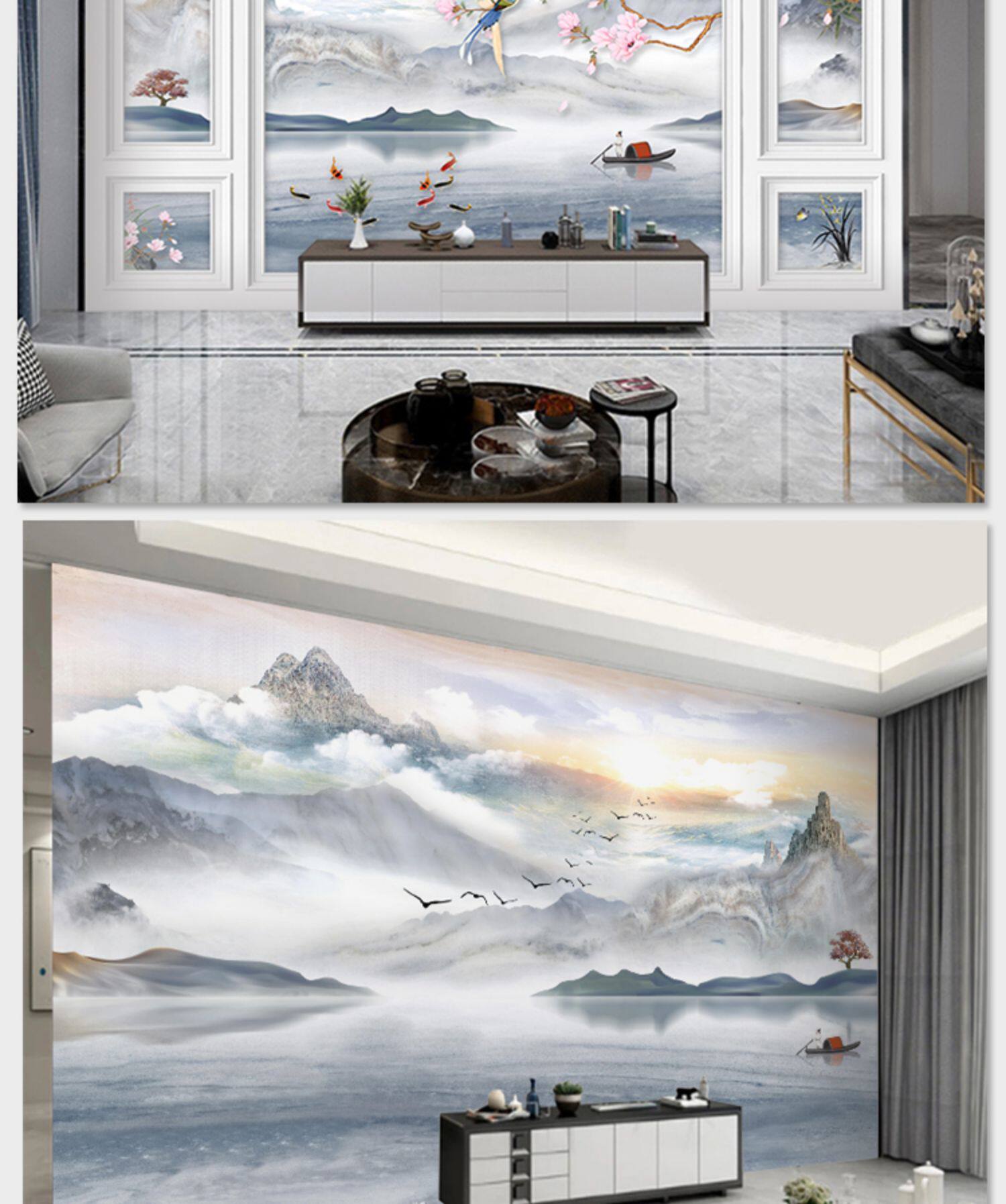 8D Stereo Living Room Tv Background Wall Wallpaper 5D Atmospheric Decorative Wall Covering Landscape Mural Film and Television Wall Seamless Wall Covering