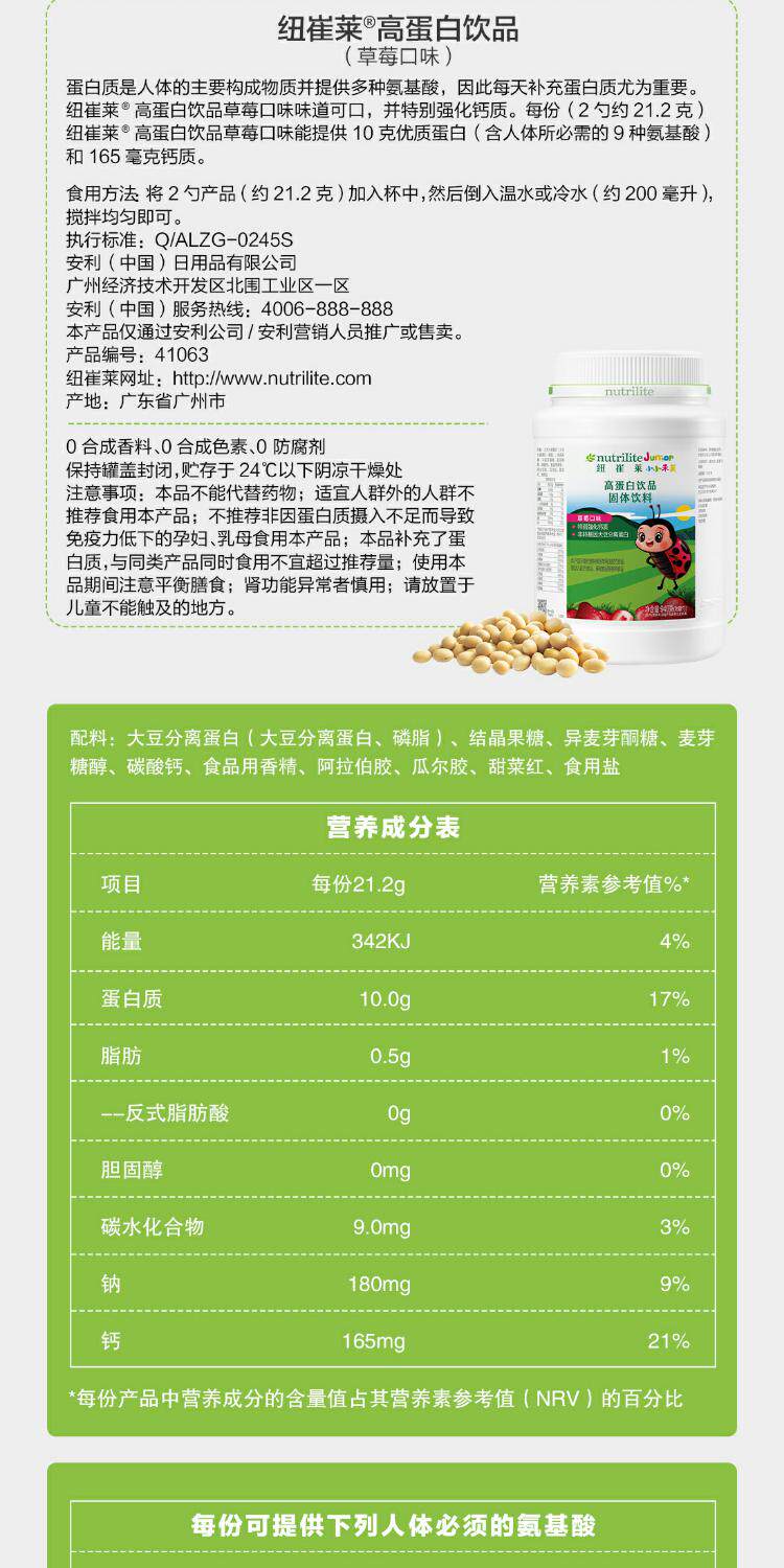 Amway children's strawberry protein powder 940g domestic Nutrilite high protein drink children's strawberry flavor protein powder
