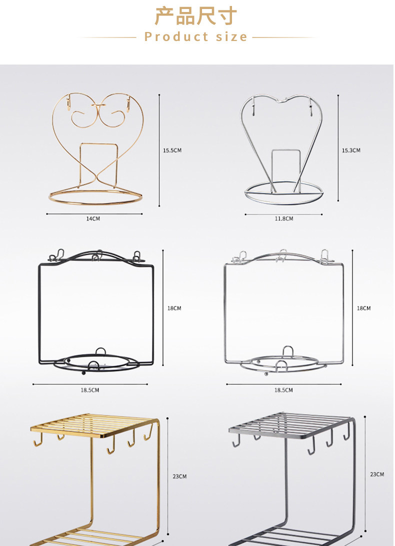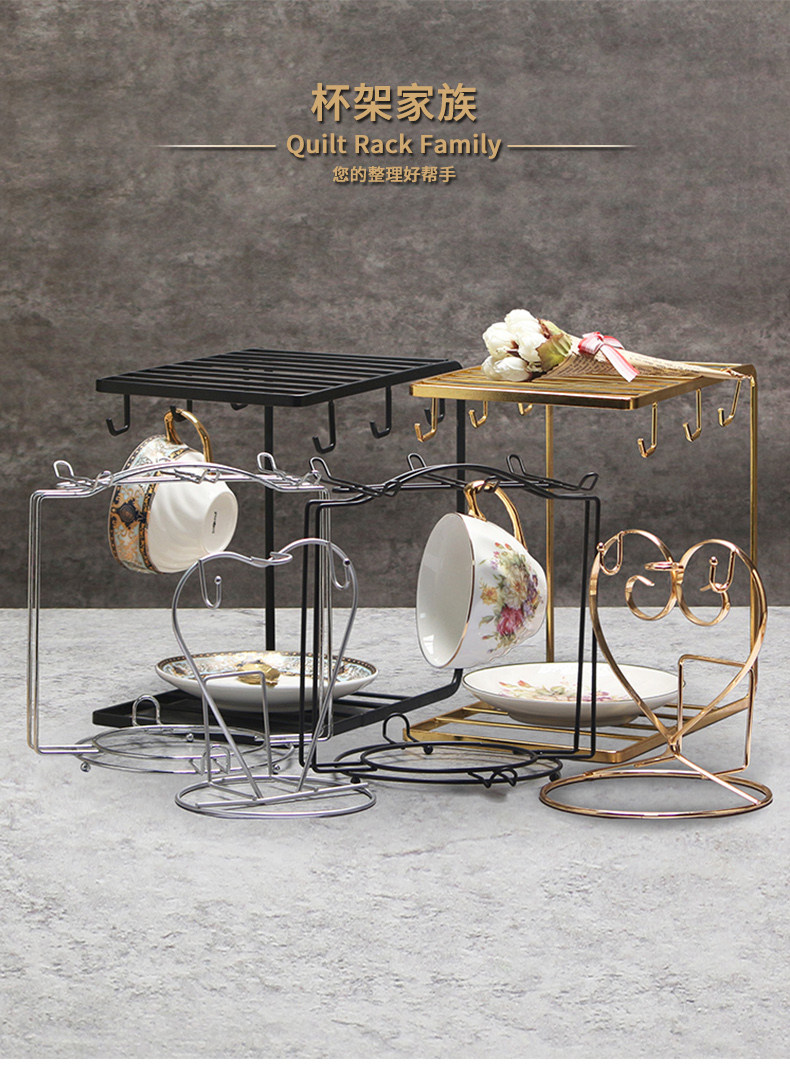 Color Classification Heart-Shaped Gold 2-Piece Shelf Set,Heart-Shaped Silver 2-Piece Shelf Set,Round Silver 6-Piece Cup Holder,Round Black 6-Piece Cup Holder Set,U-Shaped Black 6-Piece Shelf Set,U-Shaped Gold 6-Piece Shelf Set