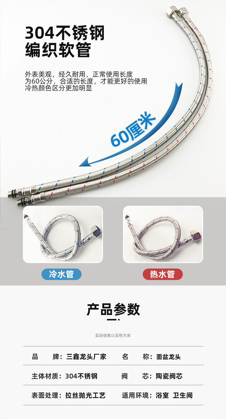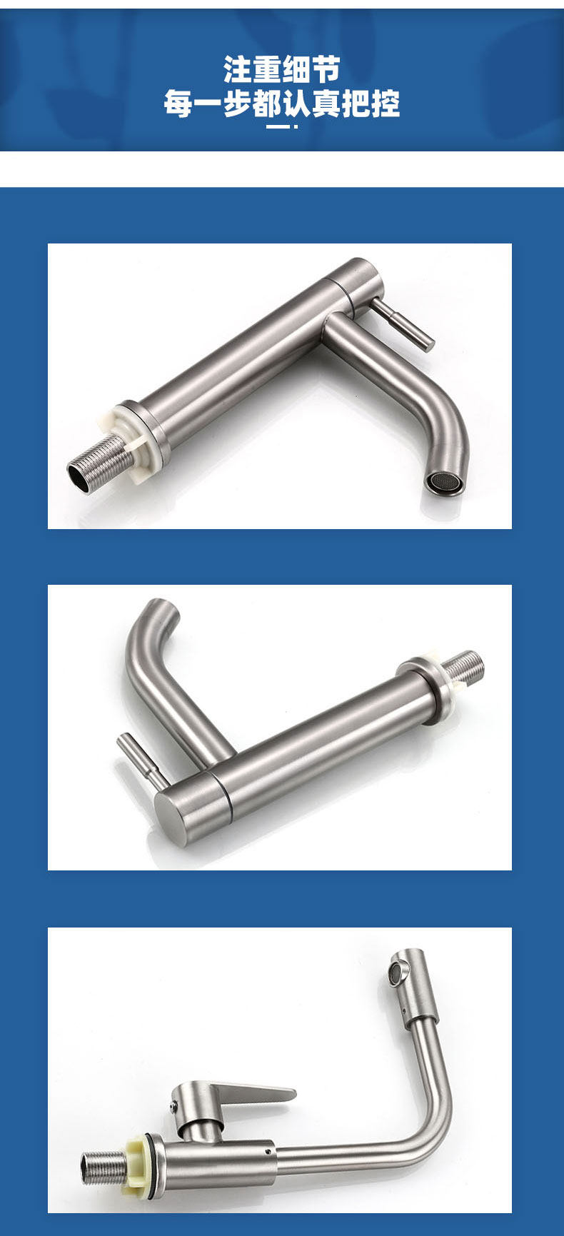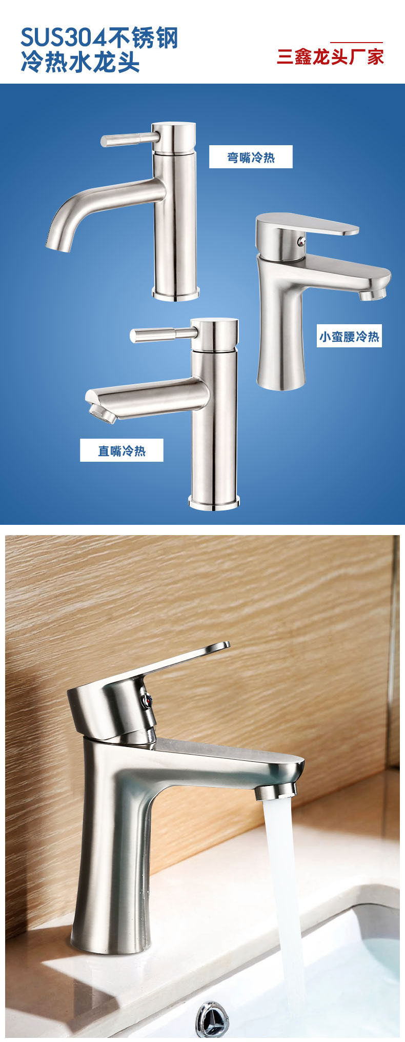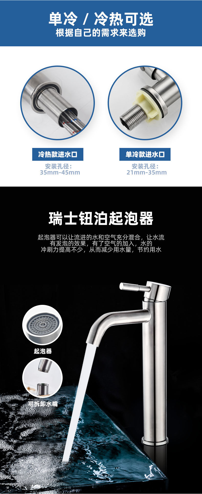 304 Stainless Steel Faucet for Home Bathroom Sink, Washbasin, Hot and Cold, Elevated Single Cold Basin Faucet