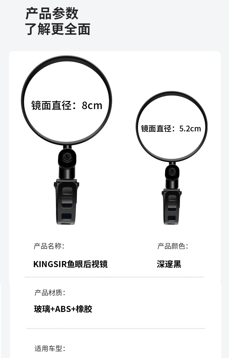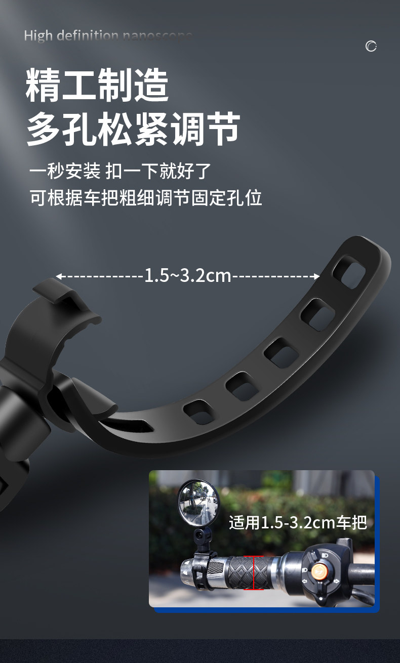 Electric Bicycle Rearview Mirror, Universal Battery Car Reflective Mirror, Scooter Reversing Mirror, Modification, No Installation Required