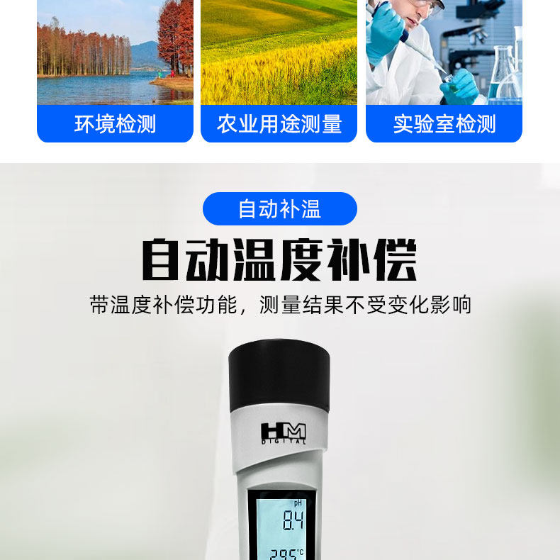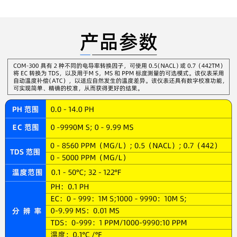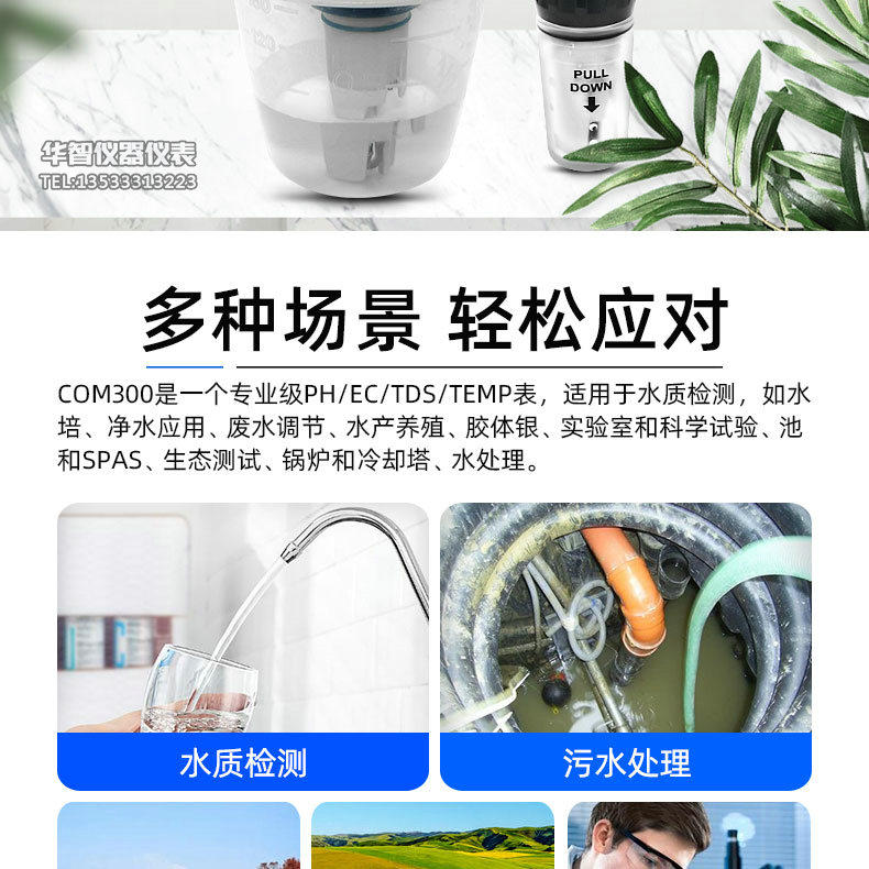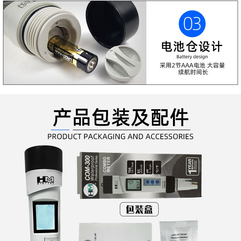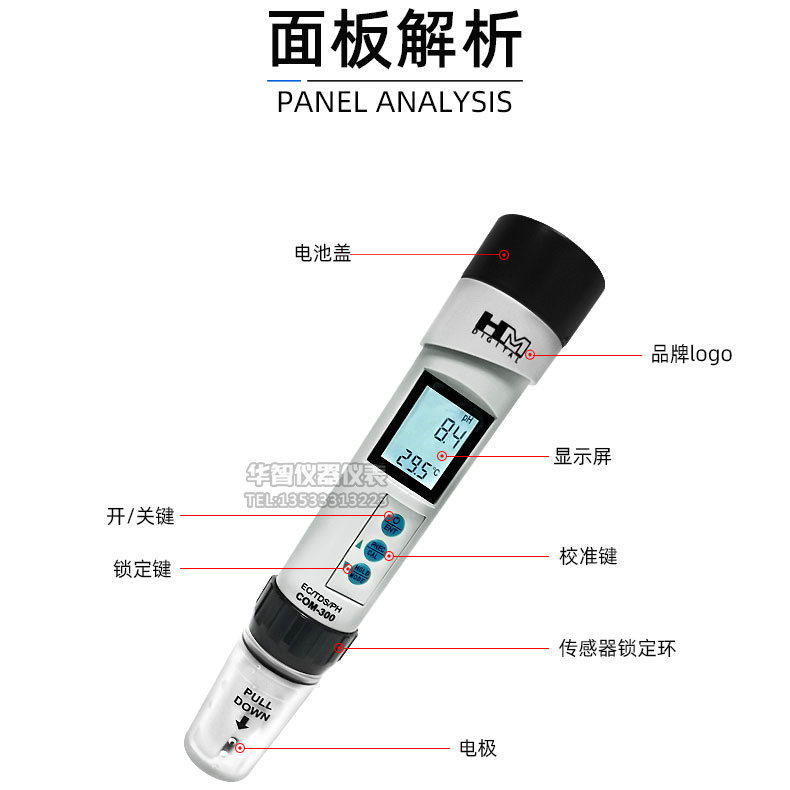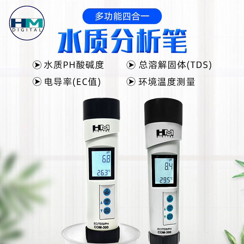 Hm Water Quality Testing Pen Com-300 Drinking Water Tap Water Ph Hardness Value/Tds/Ec Meter Ph Meter Ph Meter