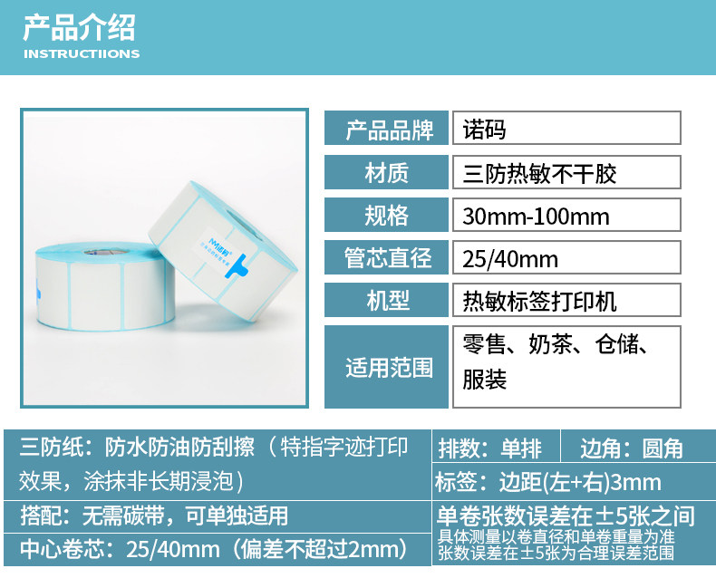 Noma Three-Proof Thermal Label Paper for Electronic Scales, Supermarket Weighing Paper 40X30 70*50 60 20 100X100X150 Self-Adhesive Blank E-Mail Sticker Barcode Pricing Paper Waterproof