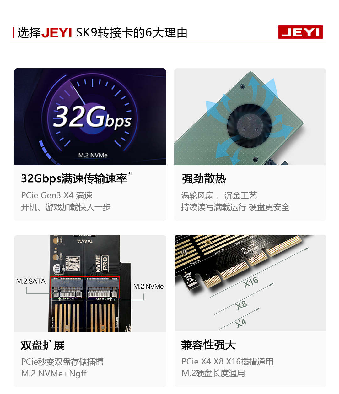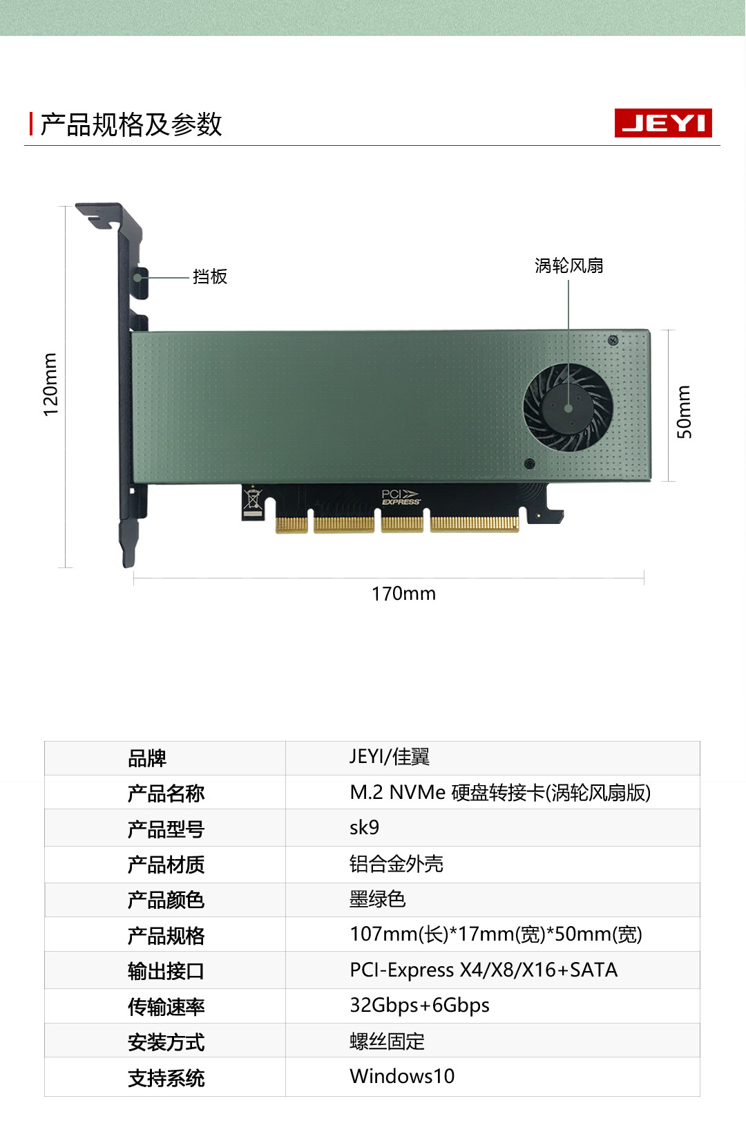 Jiayi Sk9 M.2 Expansion Nvme Adapter Card Ngff to Pcie3.0 Cooling Fan Ssd Dual Interface Sata3
