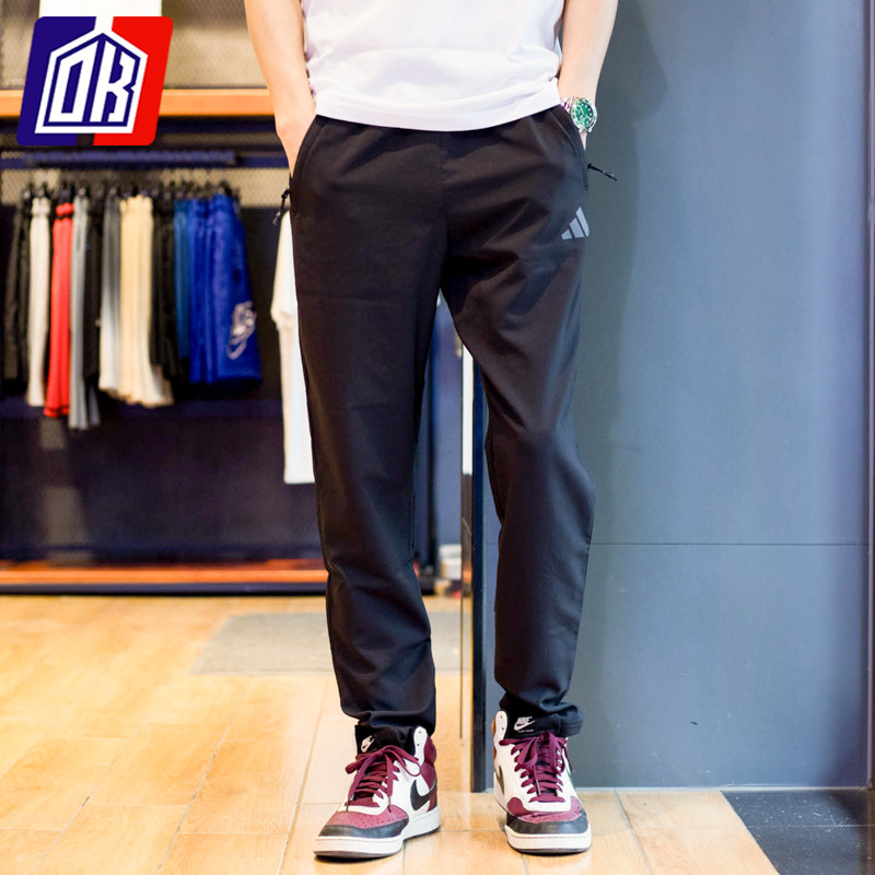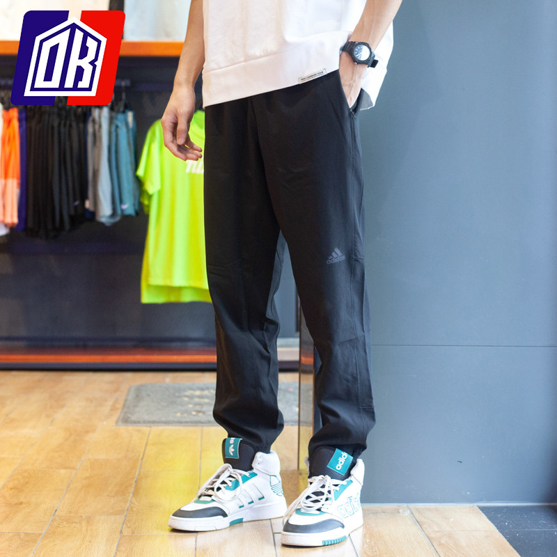 Adidas Men's Woven Long Pants Quick-Dry Breathable Running Sports Pants Straight-Leg Pants 2024 Summer Ip3977
