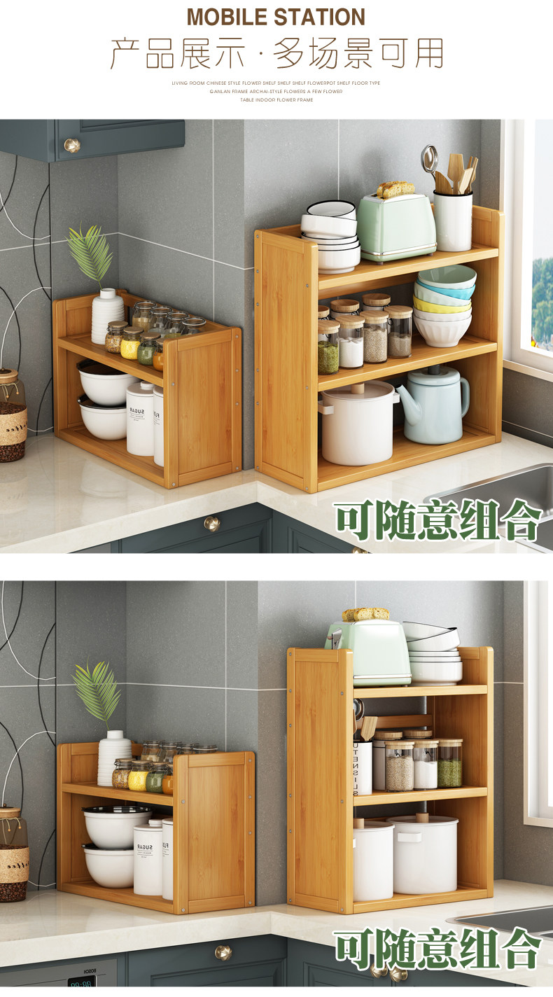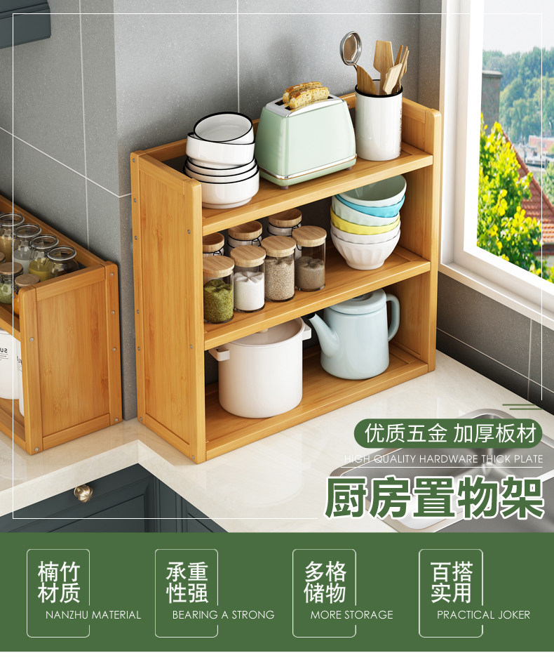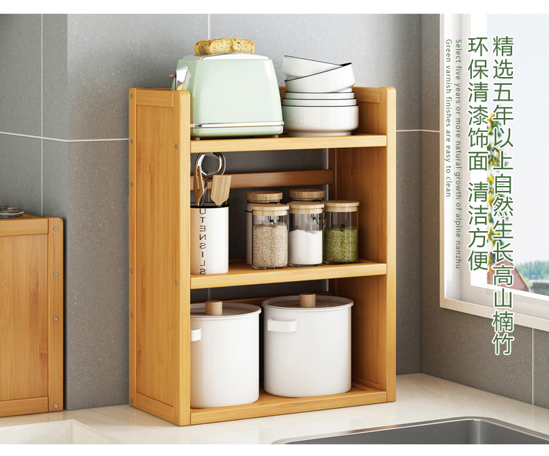 Kitchen Condiment Storage Rack, Bamboo Microwave Countertop, Small Multi-Layer Storage and Organization, Narrow Wooden Gap Shelf